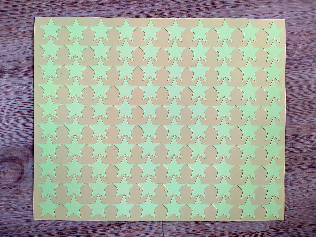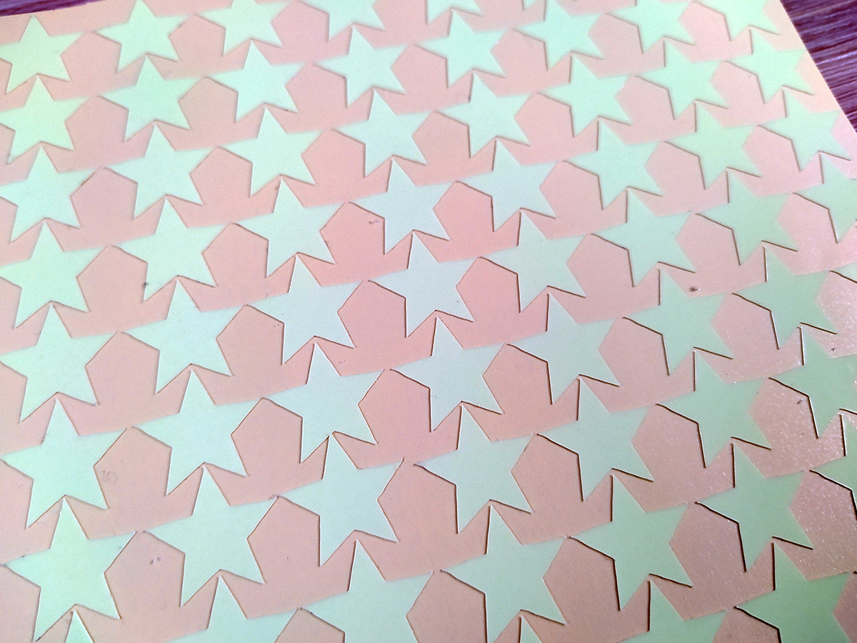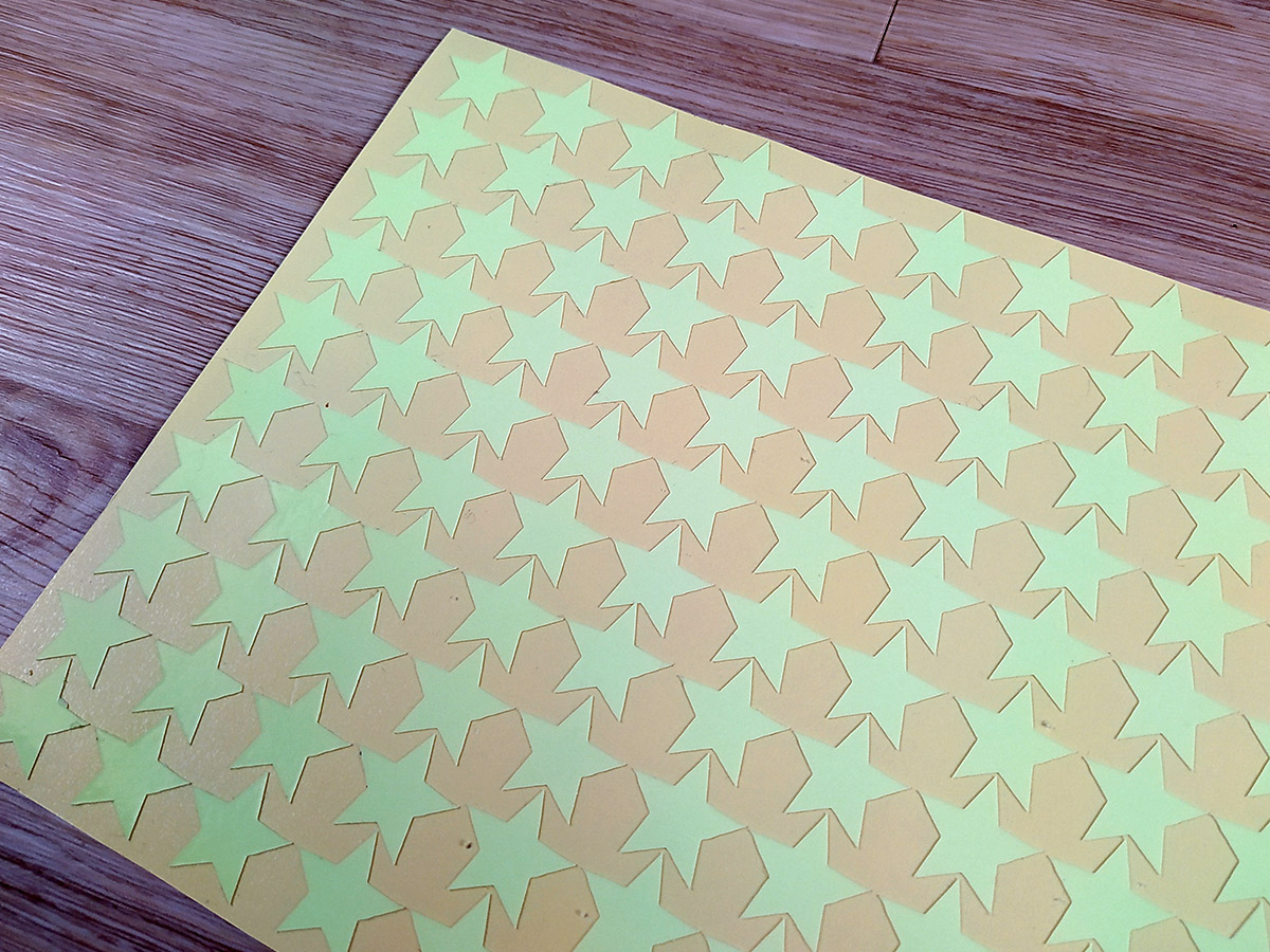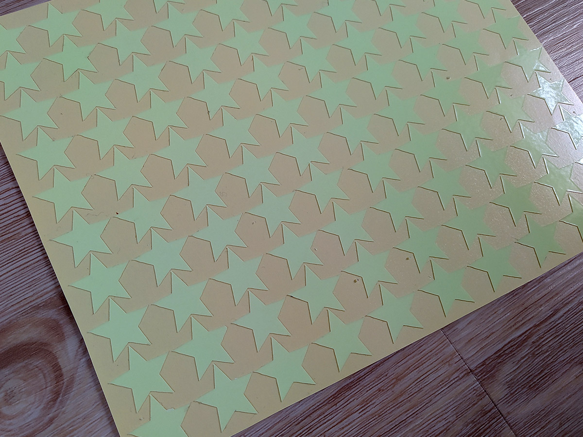 Balení obsahuje 100 ks svítících hviezdičiek približne v rozmere 2x2cm. Hviezdičky sú vyrobené z extra kvalitní luminiscenční fólia. Ide o jeden z najkvalitnejších ších materiálov na trhu.