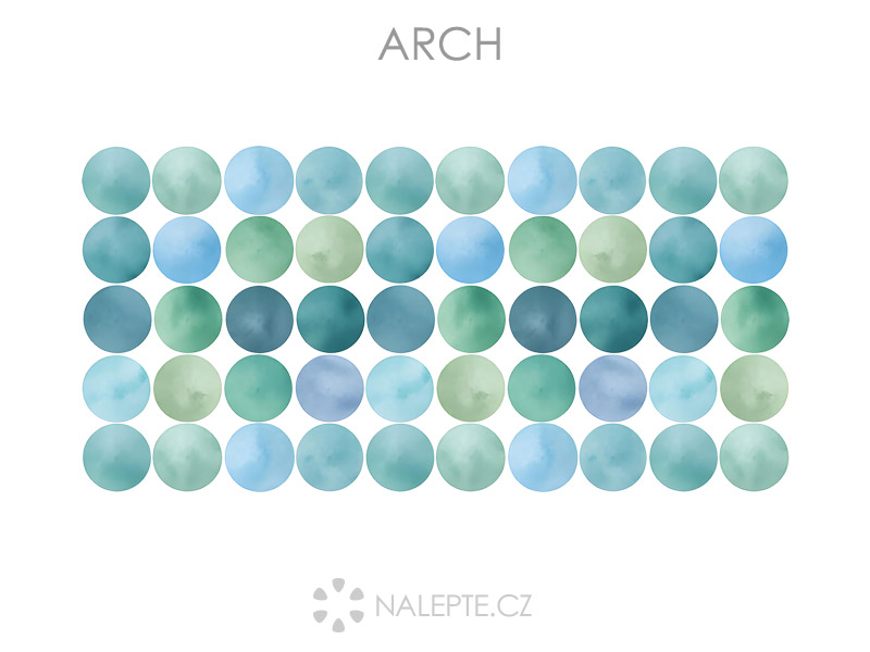 Nálepky na stenu môžete usporiadať presne podľa svojich predstáv. Bodky môžete rozmiestniť po celej stene, vytvoriť pravidelný vzor alebo len jemný dekor nad detskou postieľkou alebo detskou posteľou. Rôzne odtiene modrej a zelenej farby vytvárajú na stene hravý a prirodzený efekt, ktorý detskej izbe dodáva útulný, svieži a výrazný štýl.