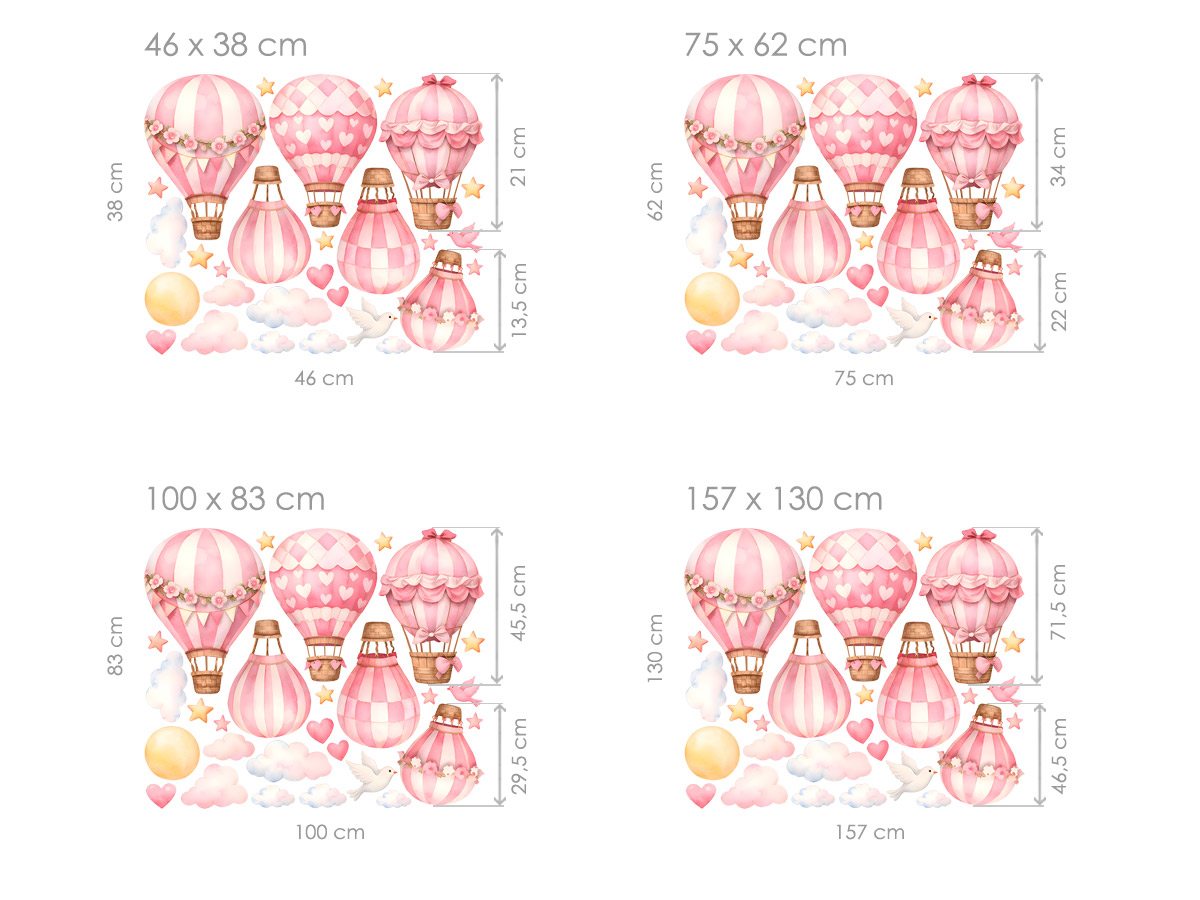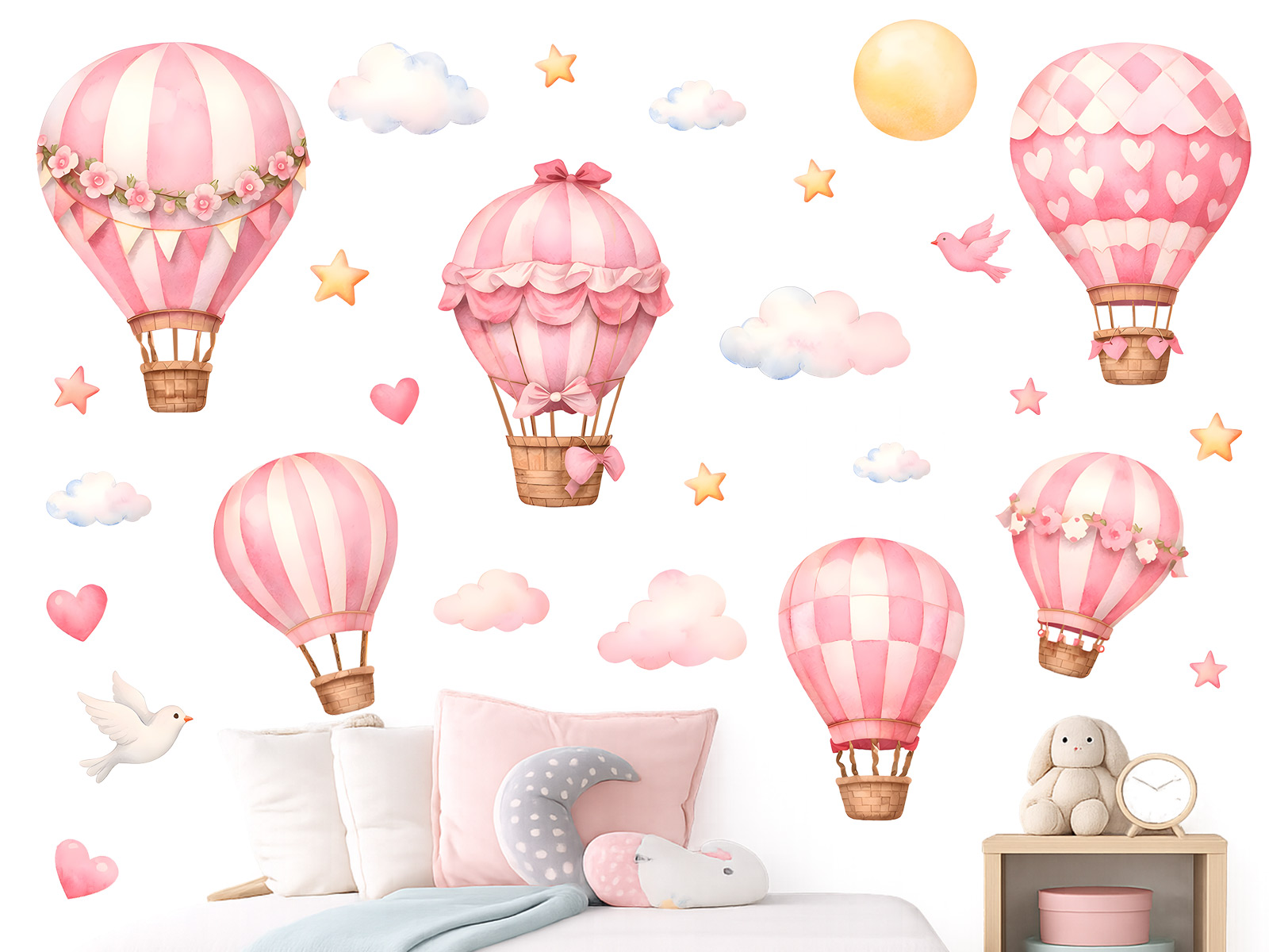 Jemné akvarelové nálepky na stenu s ružovými lietajúcimi balónikmi premenia izbu vášho dieťaťa na pokojné a snové miesto plné nežnosti, fantázie a istoty. Pastelové farby, jemné tvary oblakov a drobné srdiečka vytvárajú harmonickú atmosféru, v ktorej sa deti cítia šťastné a uvoľnené a môžu sa každý deň vydať na magickú cestu do sveta fantázie. Tento jemný motív je ideálny pre bábätká a malé princezné a krásne doplní detskú postieľku, kútik na hranie a prvé detské sny. Nálepky na stenu s balónikmi vnášajú do interiéru ľahkosť, radosť a pocit milujúceho domova, ktorý bude vaše dieťa obklopovať od prvých okamihov.