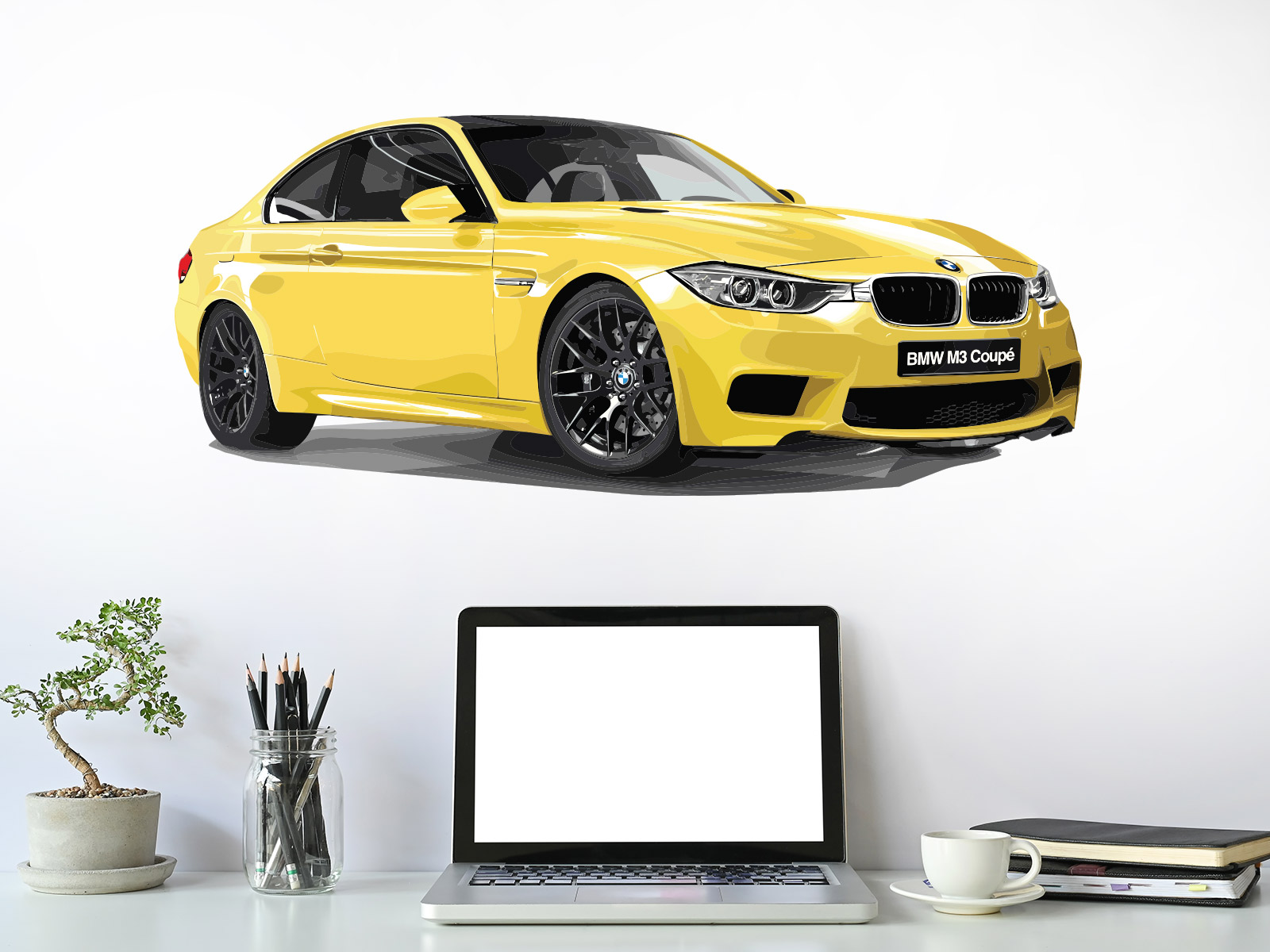 Samolepka na stenu „BMW M3 Coupé“ je ideální voľbou pre všetkých fanúšikov&sportovní jízdy a ikonického dizajnu značky BMW. Výrazné žlté vykonaní v kombinácii s agresívnymi líniami karosérie a typickými detailmi série M pôsobí dynamicky, sebavedome a moderne. Precízne spracovanéý motív zachytáva sílu, rýchlos a technickú dokonalosť legendárního modelu, ktorý sa stal symbolom výkonu a radosti z jízdy. Samolepka sa stane dominantním prvkom interiéru a skvele doplní izba teenagera, obývací priestor aj pracovňu automobilového nadšenca, kde vytvorí výraznú atmosféru inšpirovanú svetom športovních vozidiel.