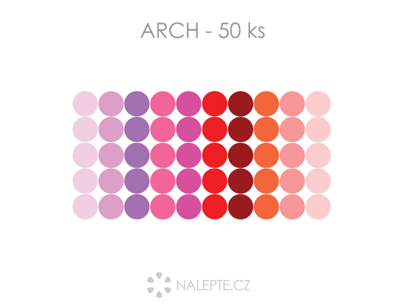 Samolepka na stenu „Puntíky pre dievčatá“ priáší do detskej izby jemnú hravosť a harmóniu v krísných dívrích odínech. Kombinácia ružových, fialových, lososových a červených bodíkov vytvára&´ veselý, ale zároveň pokojný vizuální dojem, ktorý sa ľahko zladí s nábytkom aj dalšími dekoráciami. Nepravidelné rozmístení puntíkov pôsobí ľahko a vzdušne, takže izba neprehlcuje, ale naopak ho opticky zútulní a rozjasní. Samolepky sú ideální do dievčenských izieb, kútikov na hraní aj do izbíčkov pre bábätká a umožňují vytvori originální dekoráciu presne poda vlastní fantázie – od jemného doplní steny až po výraznejší hravú kompozíciu.