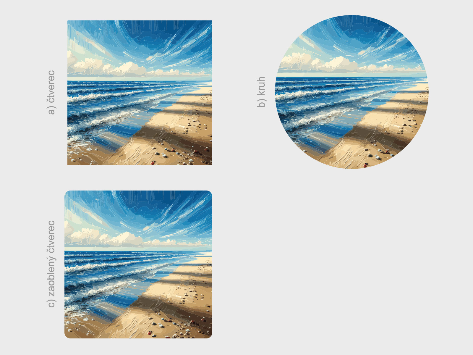 Tvar je možné zmeniť. Možno vybrať a) štvorec, b) kruh, c) zaoblený štvorec viď fotogaléria. Ak teda máte zájem o iný tvar ako na hlavní fotografiu, stačí v posledním kroku objednávky do pola poznámka napísa napr. "štvorec". Jedná sa o tištený samolepící plakát - imitácia maľby Je možné zvoliť aj ľubovoľneý vlastní rozmer hárku pomocí posuvníku alebo klikání na "Vetší", "Menší"