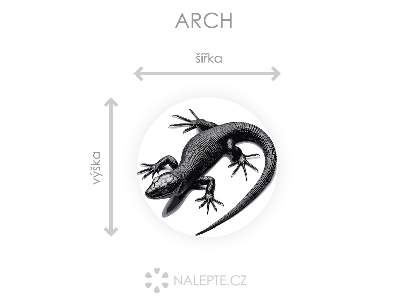 Arch = Arch si môžete prehliadnuť vo fotogalérii. Rozmer archu volíte v objednáke. Prehľad preddefinovaních rozmerov (šírka x výška): a) hárok 20 x 20 cm b) hárok 45 x 45 cm c) hárok 75 x 75 cm d) hárok 100 x 99 cm e) hárok 130 x 129 cm Je možné zvoliť aj ľubovoľneý vlastní rozmer hárku pomocí posuvníku alebo klikání na "Vetší", "Menší" Ještierky sú veľmi mrštneé a ví sa o nich, že šplhají také po stienách. Ľahko preto zdolají aj steny v tom Vašom byte. Nemusíte sa však obáva, že prelezú na iné místo – budú zdobiť stenu presne tam, kde chcete. Ještierka sa stane Vaším novým a štýlovým kamaráom.