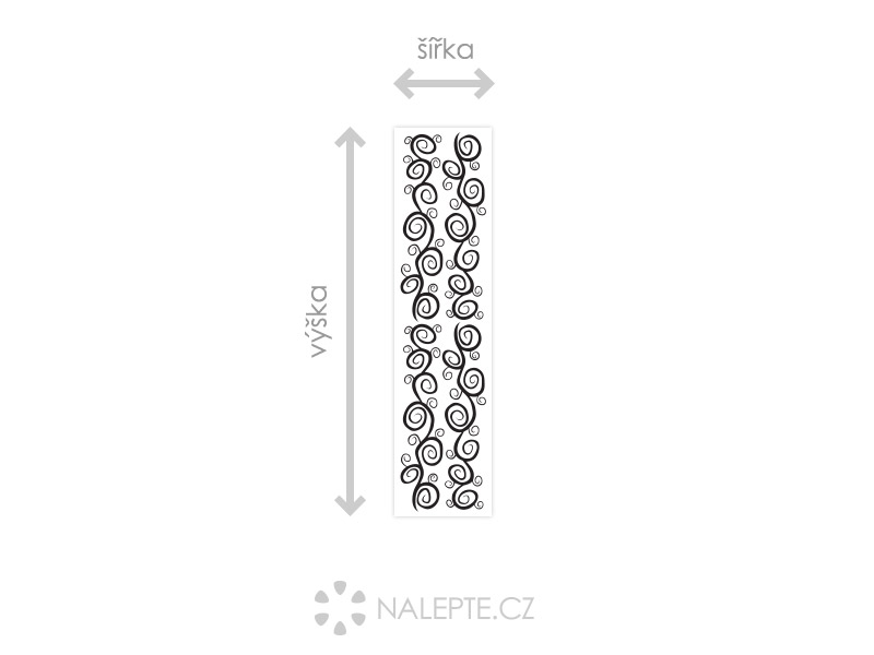 Dekoratívneí abstraktneí samolepka pruhu ako vhodný doplnok najmä na spální, chodieb či obívacích izieb,. Jedná sa vždy o bílý podklad - bílou samolepící fóliu, ktorá je potlačená ornamentami vo vámi vybrané farbe. Je možné voli vlastní rozmer teda výšku pruhu presne prispôsobiť výšce vaší múru. Není možné zvoliť bielu farbu 010 alebo jednu z metalickích farieb: 090 stri&br; Ak zvolíte jednu z týchto farieb budete kontaktováni ohldne zmeny farby alebo zrušení objednávky.