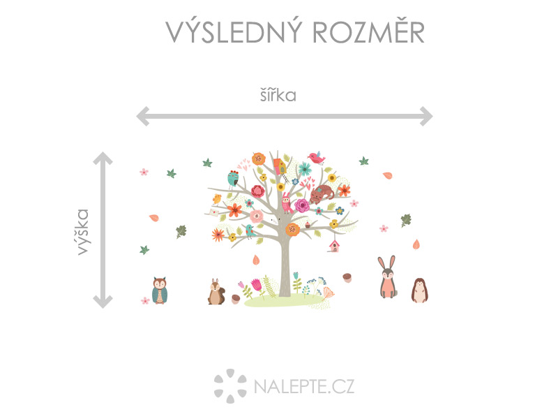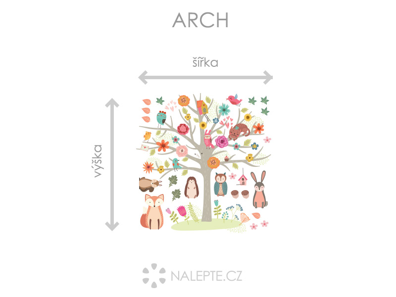 Výposledný rozmer = rozmer po nalepení na stenu podľa hlavní produktové fotografie (samozrejme môžete rozlepiť prvky úplne ľubovoľne a získáte úplne iné výposledné rozmery). Arch = takto vám bude samolepka doručená. Z hárku jednotlivé části odlepíte a nalepíte na stenu tak, aby zložili výposledný motív podľa Vašich predstáv. Arch si môžte prehliada'a vo fotogalérii. Rozmer archu volíte v objednáke. Prehľad rozmerov (šírka x výška): - výposledný rozmer 122 x 75 cm = hárok 72 x 75 cm - výposledný rozmer 165 x 100 cm = hárok 97 x 100 cm - výposledný rozmer 221 x 135 cm = hárok 130 x 135 cm Samolepku stromu, ktorá je veľa členitá je možné pred lepením rozstreíhať na víke kusov, teda odstrihnú napr. kmeň a jednotlivé části na seba napájať.