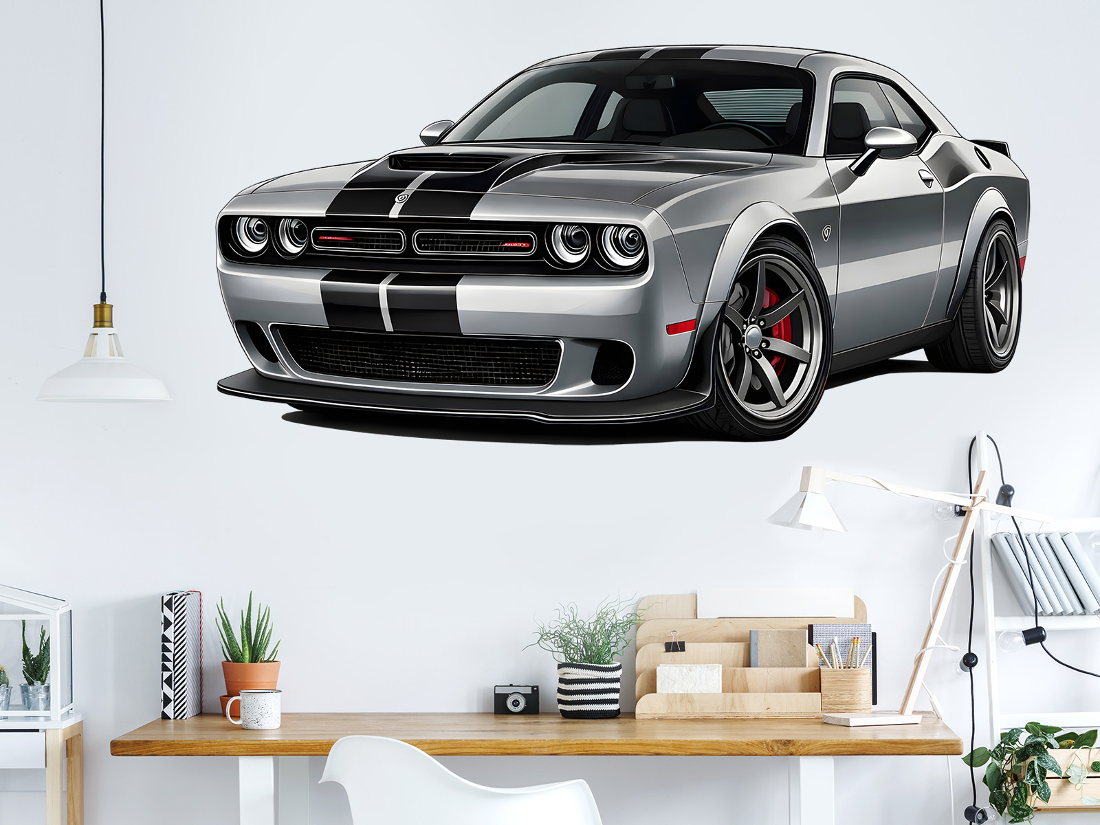 Samolepka na stenu „Dodge Challenger“ priáší do interiéru ikonický americký muscle car v celé jeho síle a charizmy. Dominantní silueta, široký postoj a agresívneí prední maska okamžite upútají pozornosť a dodají priestoru výrazný automobilový charakter. Ilustrácia pôsobí realisticky a dynamicky, ako keby bolo vozidlo pripravené vyrazi¥ vpred priímo z vaší steny. Skvele sa hodí do detskej izby, pracovne, herne i moderného obívacího priestoru a poteší každého fanúšika silných motorov, rýchlosti a americké automobilové legendy. Samolepka sa stane neprehlénutelným dizajnovým prvkom, ktorý priestoru dodá energiu, štýl a osobitosť.