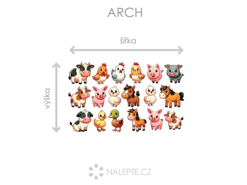 Arch = takto vám bude samolepka doručená. Každý prvok na archu je samostatná samolepka, jednotlivé části jednoduše od papírového podkladu odlepíte a nalepíte na stenu tak, aby zložili výposlední motív podľa Vašich predstáv. Arch si môžte prehliada'a vo fotogalérii. Rozmer archu volíte v objednáke. Prehľad preddefinovaních rozmerov (šírka x výška): a) hárok 47 x 28 cm b) hárok 75 x 45 cm c) hárok 100 x 60 cm d) hárok 165 x 100 cm Je možné zvoliť aj ľubovoľneý vlastní rozmer hárku pomocí posuvníku alebo klikání na "Vetší", "Menší"
