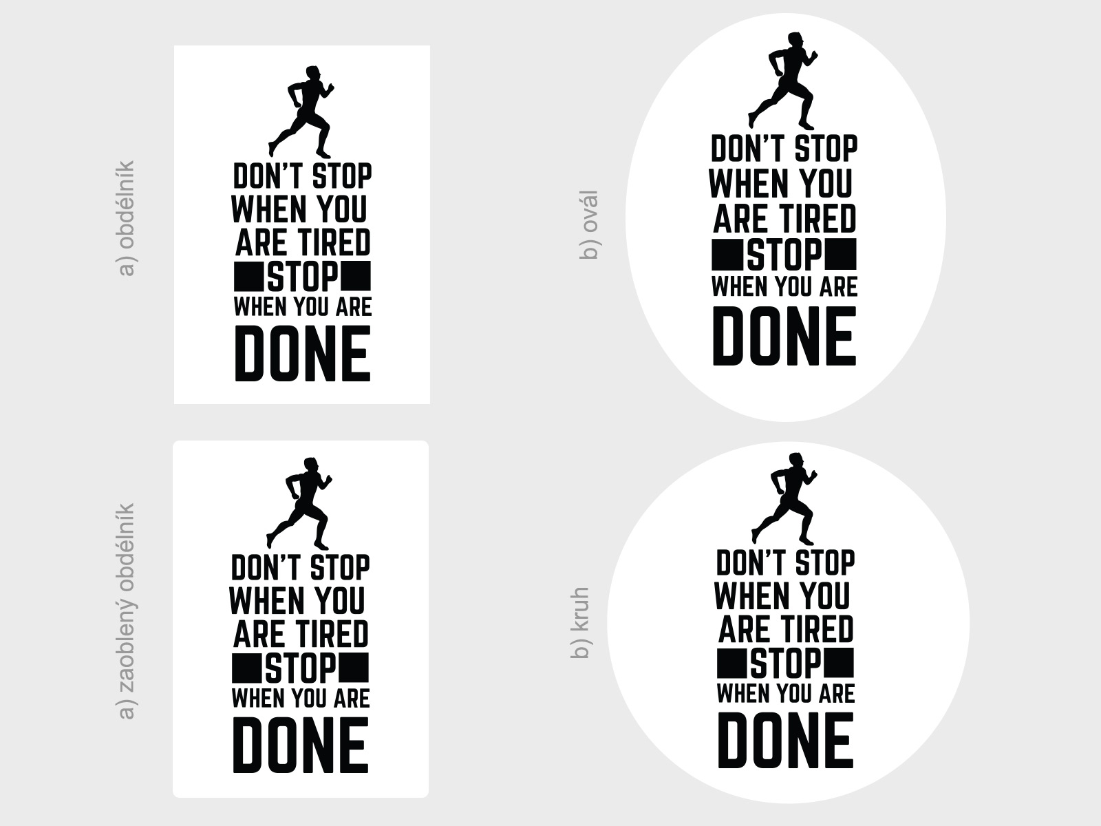 Ak vám nevyhovují preddefinované rozmery, je možné zvoli vlastní rozmer pomocí posuvníku, môžete si také vybrať z cca 50 farieb. Jedná sa o tlač na bielu samolepící vinylovú fóliu s tvarovým orezom. Lepení je jednoduché a bez priehľadné prenosové fólia. Ide o kombináciu bílého pozadí + Vámi vybrané farby. Tvar bílého pozadí je možné zmeniť. Možno vybrať a) obílník, b) ovál, c) zaoblený obdélník, d) kruh viď fotogaléria. Ak teda máte zájem o iný tvar ako na hlavní fotografiu, stačí v posledním kroku objednávky do pola poznámka napísa napr. "kruh". Dostanete email s potvrdením a finálním náhľadom. Není možné zvoli† farbu textu: bielu 010 alebo jednu z metalickích farieb: 090 striíbrná, 091 zlatá; Ak zvolíte jednu z týchto farieb budete kontaktováni ohľadne zmeny farby alebo zrušení objednávky.
