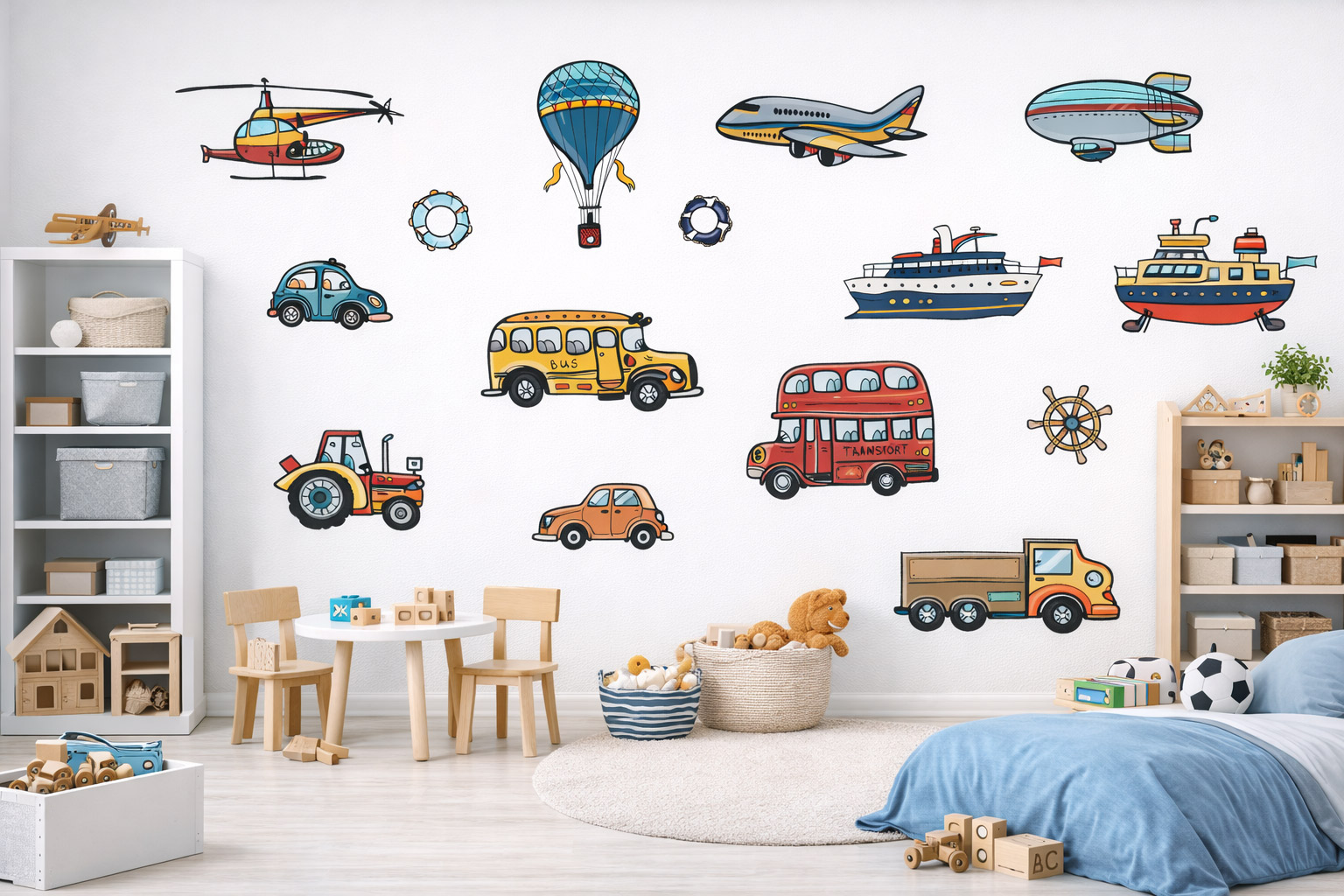 Hľadali ste: Dopravné prostriedky samolepky na stenu, Dopravné prostriedky nálepky na stenu pre deti, Dopravné prostriedky detské dekorácie na stenu, Dopravné prostriedky samolepiace nálepky na stenu