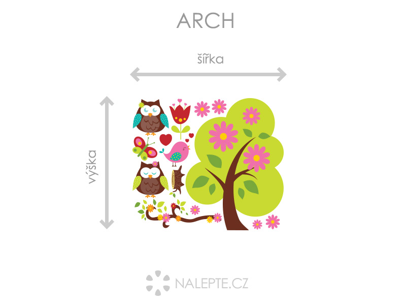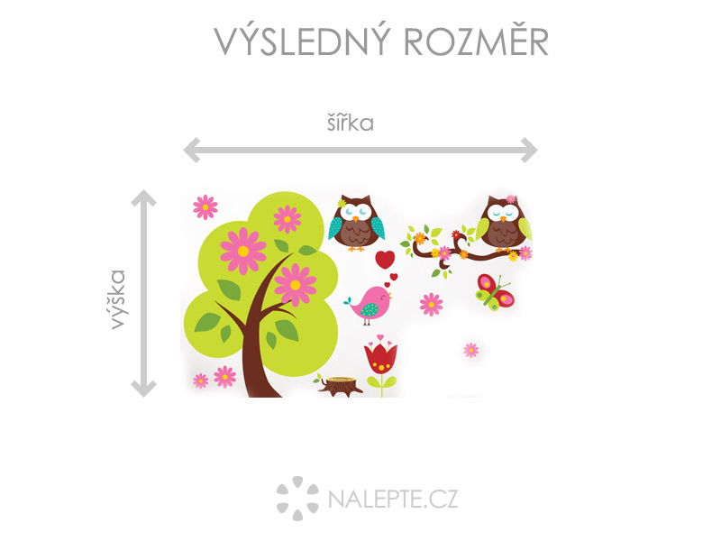 Výposledný rozmer = rozmer po nalepení na stenu podľa hlavní produktové fotografie (samozrejme môžete rozlepiť prvky úplne ľubovoľne a získáte úplne iné výposledné rozmery). Arch = takto vám bude samolepka doručená. Z hárku jednotlivé části odlepíte a nalepíte na stenu tak, aby zložili výposledný motív podľa Vašich predstáv. Arch si môžte prehliada'a vo fotogalérii. Rozmer archu volíte v objednáke. Prehľad rozmerov (šírka x výška): a) výposledný rozmer 69 x 40 cm = hárok 46 x 40 cm b) výposledný rozmer 112 x 65 cm = hárok 75 x 65 cm c) výposledný rozmer 150 x 87 cm = hárok 100 x 87 cm d) výposledný rozmer 225 x 130 cm = hárok 150 x 130 cm Samolepka na stenu do každéej detskej izby. Jednotlivé sovičky a prvky môžte po detskej izbe rozmístit podºa své fantázie. Odporúčame kombinovať s dalšími samolepkami sovičiek z naší ponuky ídky.