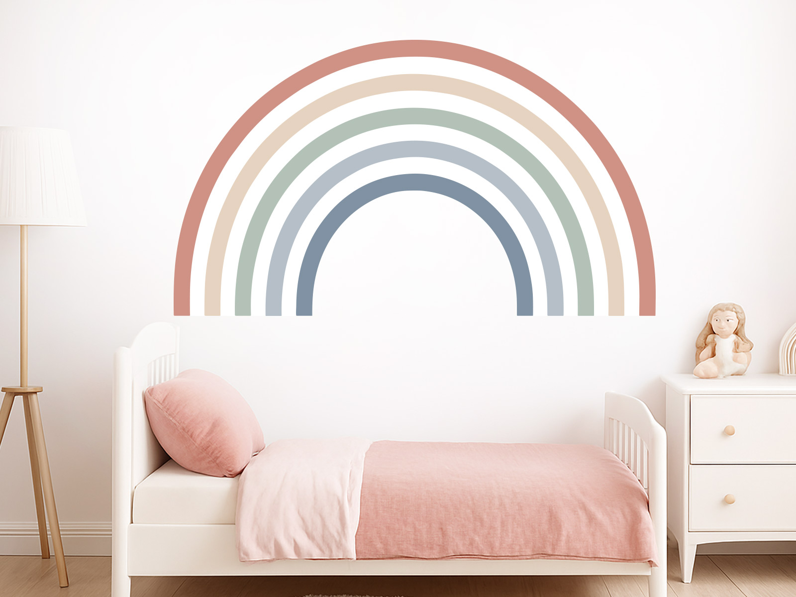 Samolepka na stenu „Dúha nordic“ je elegantní a nadčasový doplnok do detskej izby, ktorý zaujme svoju jednoduchosťí a jemnú farebnosťí inšpirovanú severským štýlom. Oblúková dúha v tlmených pastelových tónech pôsobí pokojne, harmonicky a prirodzene, diaíky čomu krásne zapadne do moderních i minimalistických interiérov. Motív je navrhnutý tak, aby nepôsobil rušivo, ale naopak vytvára priíjemnú a vyváženú atmosféru podporující pocit bezpečí a pohody. Dúha sa stává jemným vizuálním akcentom nad postýlkou, v hrac&iacutom; kútiku alebo v kľudové zóne izby a doává priestoru útulný, čistý a esteticky vyvážený vzhľad, ktorý porastie spolu s dítetom.