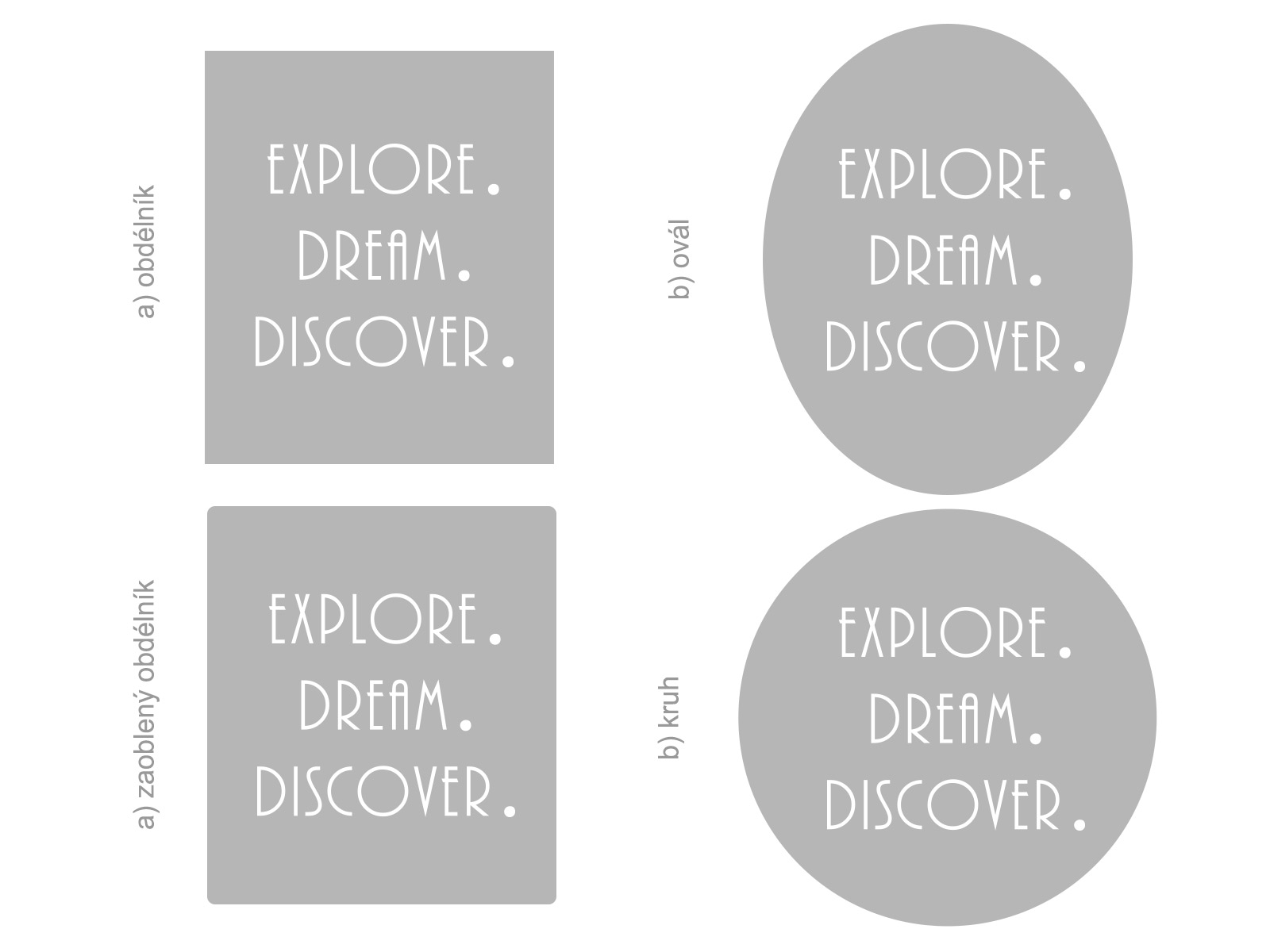 Ak vám nevyhovují preddefinované rozmery, je možné zvoli vlastní rozmer pomocí posuvníku, môžete si také vybrať z cca 50 farieb. Jedná sa o tlač na bielu samolepící vinylovú fóliu s tvarovým orezom. Lepení je jednoduché a bez priehľadné prenosové fólia. Ide o kombináciu pozadí vo vámi vybrané farbe + štandardne bílé farby textu (na prání je možné zmeniť aj farbu textu). Tvar pozadí je možné zmeniť. Možno vybrať a) obílník, b) ovál, c) zaoblený obdélník, d) kruh viď fotogaléria. Ak teda máte zájem o iný tvar ako na hlavní fotografiu, stačí v posledním kroku objednávky do pola poznámka napísa napr. "ovál". Dostanete email s potvrdením a finálním náhľadom. Není možné zvoli farbu pozadí: bielu 010 (v kombinácii s bílým textom; 090 striíbrná, 091 zlatá, 092 medená. Ak zvolíte jednu z týchto farieb budete kontaktováni ohľadne zmeny farby alebo zrušení objednávky.