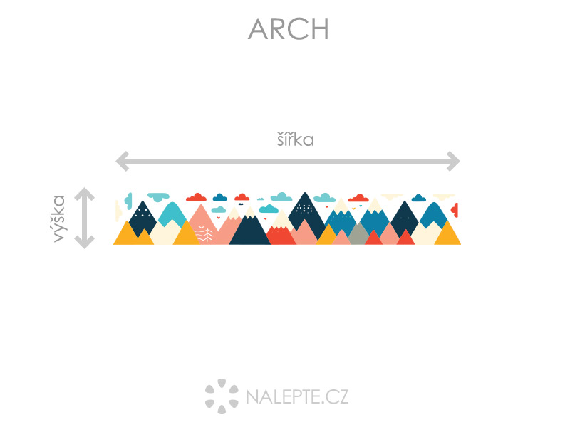 Arch = takto vám budú samolepky doručené. Z hárku jednotlivé části odlepíte a nalepíte na stenu tak, aby zložili výposledný motív podľa Vašich predstáv. Arch si môžte prehliada'a vo fotogalérii. Rozmer archu volíte v objednáke. Prehľad rozmerov (šírka x výška): a) hárok 100 x 15 cm b) hárok 130 x 20 cm c) hárok 293 x 45 cm Šíre celého pohorí odpovedídá šírke hárku.