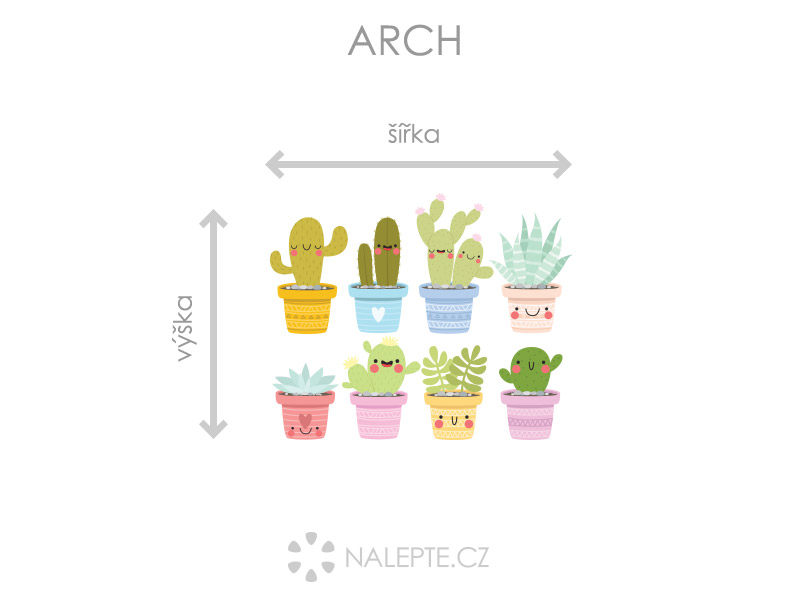 U tohto produktu zodpovedídají rozmery archu rozmerom výsledného obrásku viď hlavní fotografie. Volíte teda veºkost a cenu za obrázok sa všami kaktusmi v kvetináčích tak, ako ho vidíte na hlavní fotografiu.