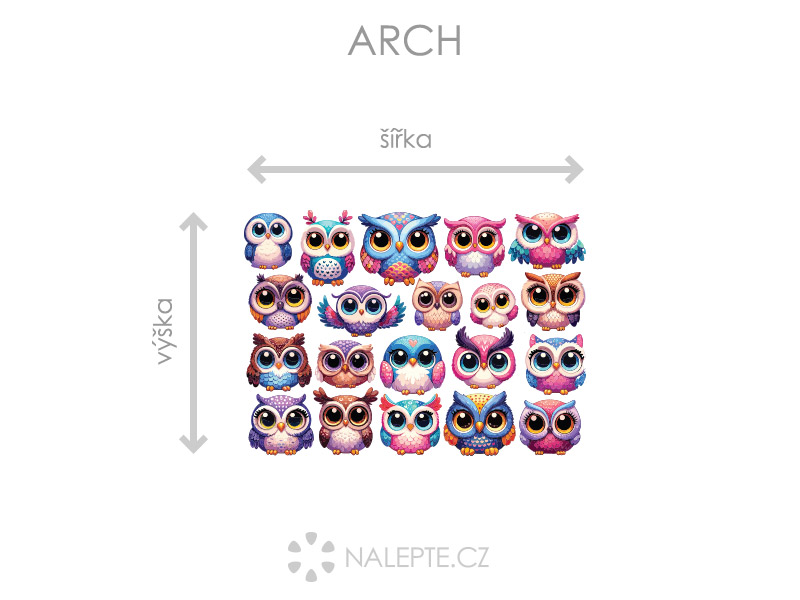Arch = takto vám bude samolepka doručená. Každý prvok na archu je samostatná samolepka, jednotlivé části jednoduše od papírového podkladu odlepíte a nalepíte na stenu tak, aby zložili výposlední motív podľa Vašich predstáv. Arch si môžte prehliada'a vo fotogalérii. Rozmer archu volíte v objednáke. Prehľad preddefinovaních rozmerov (šírka x výška): a) hárok 45 x 32 cm b) hárok 75 x 54 cm c) hárok 100 x 72 cm d) hárok 139 x 100 cm Je možné zvoliť aj ľubovoľneý vlastní rozmer hárku pomocí posuvníku alebo klikání na "Vetší", "Menší"
