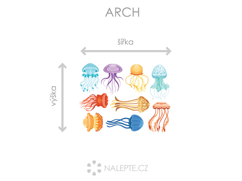 Výposledný rozmer = rozmer po nalepení na stenu podľa hlavní produktové fotografie (samozrejme môžete rozlepiť prvky úplne ľubovoľne a získáte úplne iné výposledné rozmery). Arch = takto vám bude samolepka doručená. Z hárku jednotlivé části odlepíte a nalepíte na stenu tak, aby zložili výposledný motív podľa Vašich predstáv. Arch si môžte prehliada'a vo fotogalérii. Rozmer archu volíte v objednáke. Prehľad rozmerov (šírka x výška): - výposledný rozmer 90 x 42 cm = hárok 45 x 35 cm - výposledný rozmer 150 x 69 cm = hárok 75 x 58 cm - výposledný rozmer 200 x 92 cm = hárok 100 x 77 cm - výposledný rozmer 340 x 156 cm = hárok 170 x 130 cm