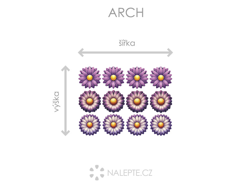 Arch = takto vám bude samolepka doručená. Každý prvok na archu je samostatná samolepka, jednotlivé části jednoduše od papírového podkladu odlepíte a nalepíte na stenu tak, aby zložili výposlední motív podľa Vašich predstáv. Arch si môžte prehliada'a vo fotogalérii. Rozmer archu volíte v objednáke. Prehľad preddefinovaních rozmerov (šírka x výška): - 12 ks 4 x 4 cm - 12 ks 6 x 6 cm - 12 ks 10 x 10 cm - 12 ks 18 x 18 cm - 12 ks 24 x 24 cm Je možné zvoliť aj ľubovoľneý vlastní rozmer hárku pomocí posuvníku alebo klikání na "Vetší", "Menší"