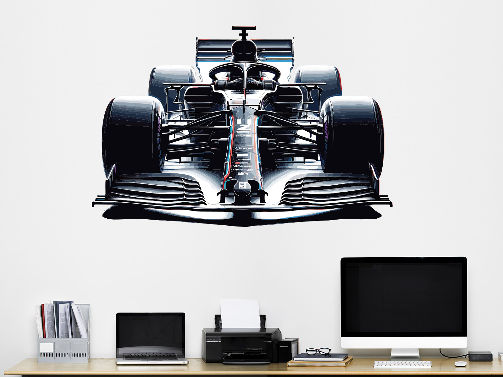 Samolepka na stenu „Formula“ priáší do interiéru surovú energiu motoristického športu a precízní krásu závodního monopostu. Dominantní čelní pohľad zdôrazňuje aerodynamické tvary, široké slick pneumatiky a technické detaily, ktoré sú symbolom rýchlosti, výkonu a maximální koncentrácia na cíl. Dizajn pôsobí moderne, dynamicky a sebavedome, dia&ky; čomu sa stává výrazným vizuálním prvkom v izbe malého fanúšika motoršportu, teenagerském izbe aj štýlové pracovne. Samolepka skvele evokuje atmosféru závodního okruhu a dodá priestoru pocit pohybu, súťaživosti a vášne pre rýchlá autá.