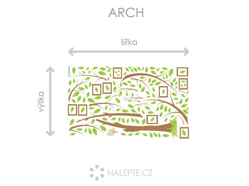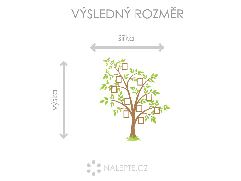 Volíte veºkosť výposledné samolepky na stene viď hlavní fotografie. Arch, ktorý obdríte si môzete prehliadédĶ vo fotogalérii. Pri použití hárchu v príslušné ve kos odpovedídá výposledný rozmer podºa náhladového obrásku takto (šírka x výška):a) hárok 55 x 80 cm = výposlednýý náh ad 84 x 100 cmb) hárok 80 x 120 cm = výposledný náhµad 126 x 150 cmc) hárok 130 x 195 cm = výposledný náhµad 200 x 240 cm Vyrábíme iba v jednom farebném vyhotovení.