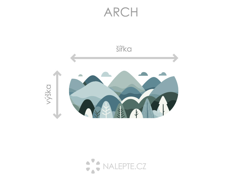Arch = takto vám budú samolepky doručené. Každý prvok (mráčky lepíte samostatne) na archu je samostatná samolepka, jednotlivé části jednoduše od papírového podkladu odlepíte a nalepíte na stenu tak, aby zložili výposlední motív podľa Vašich predstáv. Arch si môžte prehliada'a vo fotogalérii. Rozmer archu volíte v objednáke. Prehľad preddefinovaních rozmerov (šírka x výška): a) hárok 46 x 20 cm b) hárok 75 x 33 cm c) hárok 100 x 43 cm d) hárok 130 x 56 cm e) hárok 230 x 100 cm Je možné zvoliť aj ľubovoľneý vlastní rozmer hárku pomocí posuvníku alebo klikání na "Vetší", "Menší"