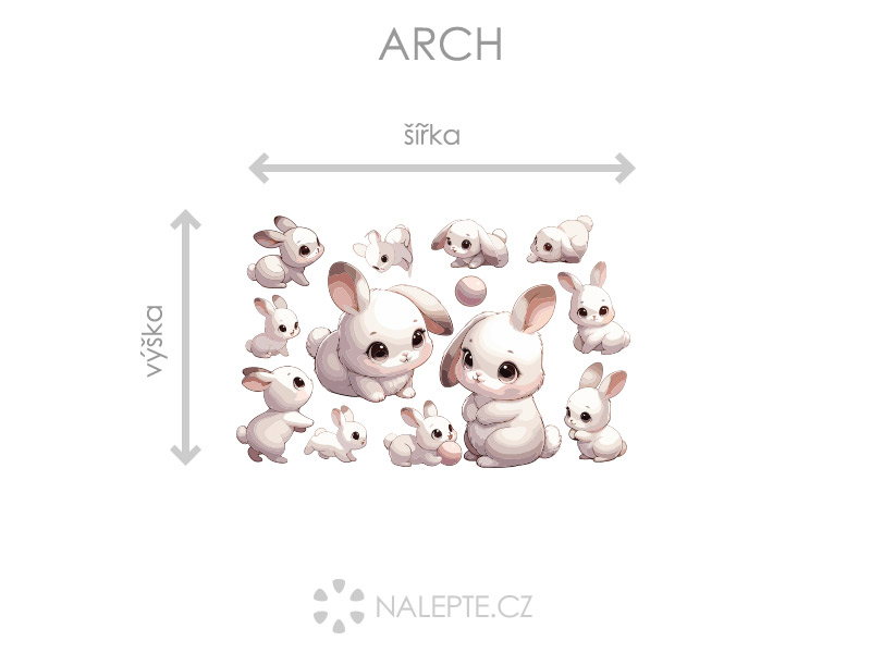 Arch = takto vám bude samolepka doručená. Každý prvok na archu je samostatná samolepka, jednotlivé části jednoduše od papírového podkladu odlepíte a nalepíte na stenu tak, aby zložili výposlední motív podľa Vašich predstáv. Arch si môžte prehliada'a vo fotogalérii. Rozmer archu volíte v objednáke. Prehľad preddefinovaních rozmerov (šírka x výška): a) hárok 47 x 30 cm b) hárok 75 x 48 cm c) hárok 100 x 64 cm d) hárok 130 x 83 cm Je možné zvoliť aj ľubovoľneý vlastní rozmer hárku pomocí posuvníku alebo klikání na "Vetší", "Menší"