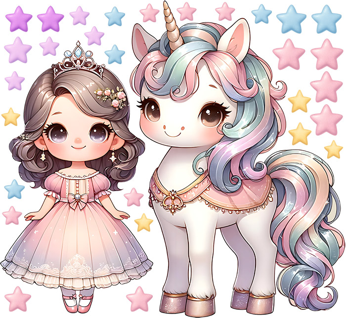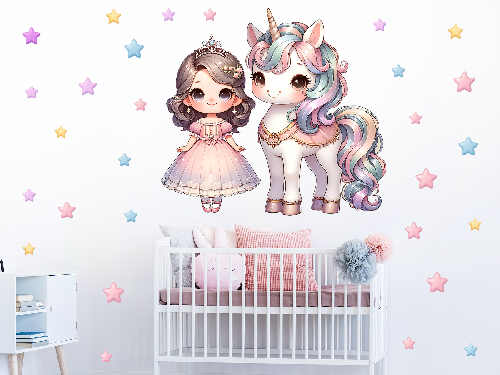 Vytvorte v detskej izbe kúzelný svet pohádek s roztomilou sadou samolepiek Hríbe jednorožca a princezná. Jemná pastelová ilustrácie malé princeznej a jej hríbátka jednorožca v nežných ružových, fialových a modrých tónoch dodá detskej izbe kúzelnú atmosféru snov a fantázie. Doplnkové farebné hviezdičky je mo|né rozmísti† po celé stene a vytvoriť tak dokonalú pohádkovú kompozíciu. Samolepky mají hodvábne matný povrch, pôsobí ako malované akvarelom a krásne ladí s interiérom detského izby. Balení obsahuje:- 1× hlavní motív: princezná- 1× hlavní motív: hríbátko jednorožca- množstvoí samostatných farebn&´ch hviezdičiek pre dotvorení dekorácia