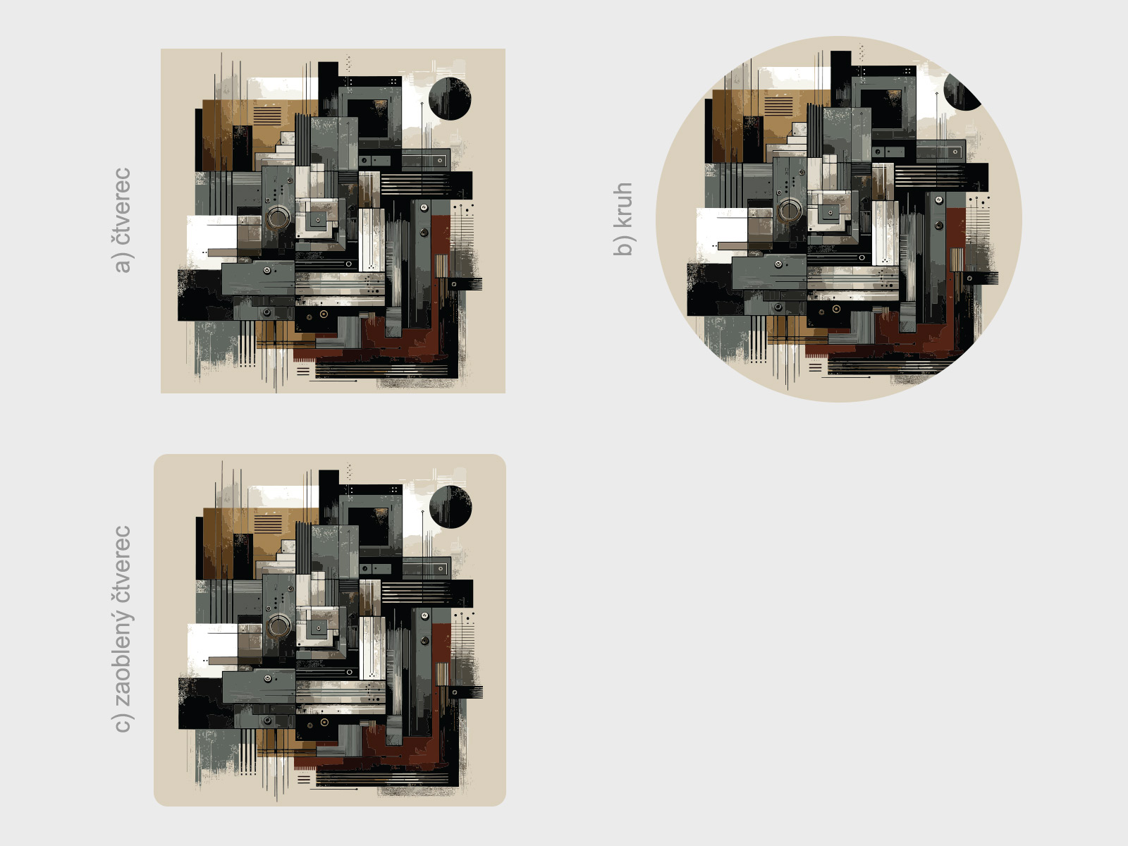 Tvar je možné zmeniť. Možno vybrať a) štvorec, b) kruh, c) zaoblený štvorec viď fotogaléria. Ak teda máte zájem o iný tvar ako na hlavní fotografiu, stačí v posledním kroku objednávky do pola poznámka napísa napr. "kruh". Jedná sa o tištený samolepící plakát - imitácia maľby Je možné zvoliť aj ľubovoľneý vlastní rozmer hárku pomocí posuvníku alebo klikání na "Vetší", "Menší"