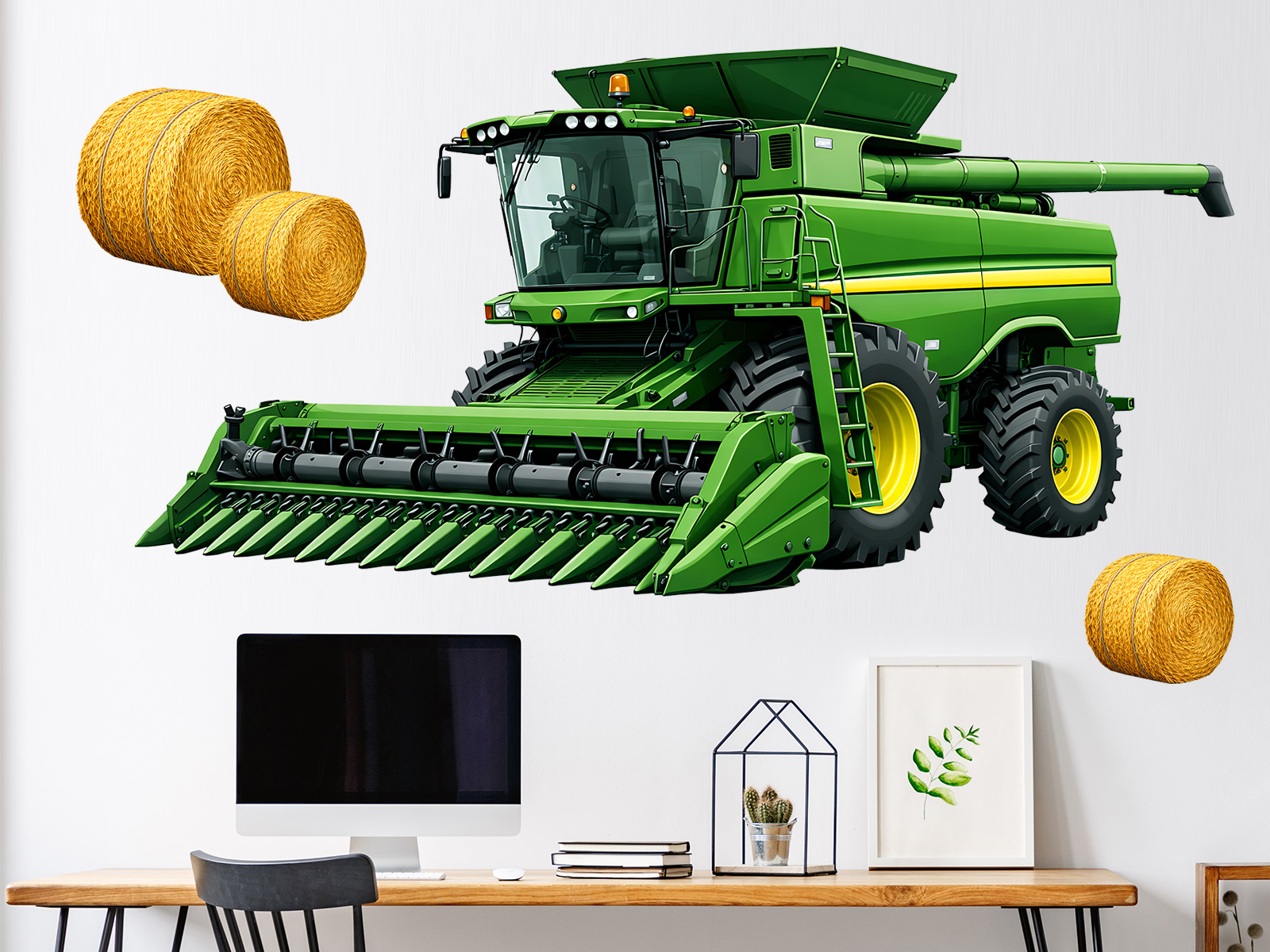 Samolepka na stenu „Kombajn“ priáší do detského izby alebo herního kútika pôsobivý motív moderní poľnohospodárské techniky, ktorá zaujme každého malého milovníka traktorov a priácov na poli. Detailne spracovanéý zelený kombajn s typickím žacím ústrojím a doplnkamiými balíkami zlámy pôsobí realisticky, prehľadne a zárovne hravo, takže krásne podnecuje detskú fantáziu a chuť objavovať svet poľnohospodárstva. Díky samostatným prvkom je mo|né vytvori vlastní scénu úrody a prispôsobi† si rozmístení podľa priestoru i predstáv dítete, nech už kombajn „pracuje“ nad posteí, pri písacím stole alebo na velké voľné stene. Tento motív sa skvele hodí ako výrazná dekorácia pre malé farmáre, ktorá dodá interiéru dynamiku, farbu a dobrodružnú atmosféru vidieka.