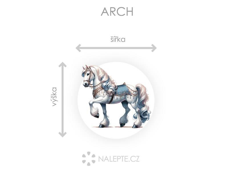 Arch = Arch si môžete prehliadnuť vo fotogalérii. Rozmer archu volíte v objednáke. Prehľad preddefinovaních rozmerov (šírka x výška): a) hárok 20 x 20 cm b) hárok 45 x 45 cm c) hárok 75 x 75 cm d) hárok 100 x 100 cm e) hárok 130 x 130 cm Je možné zvoliť aj ľubovoľneý vlastní rozmer hárku pomocí posuvníku alebo klikání na "Vetší", "Menší" Unicorn, jednorožec, kôň