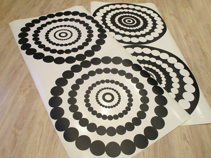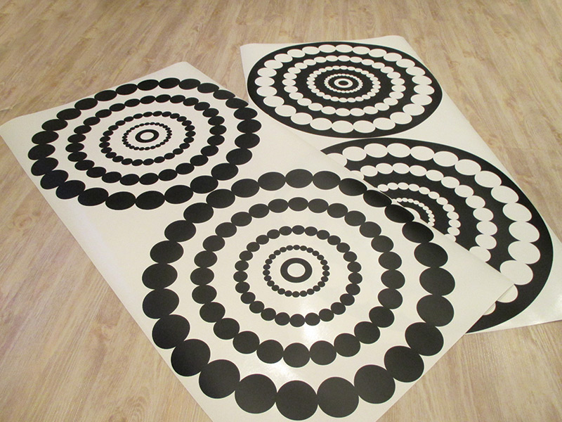 Cena je uvedená za všetky tri kruhy tak, ako ich vidíte na obrásku. Prostrední kruh na obrásku má iné vykonaní, ak chcete inú kombináciu kruhov alebo napr. jiný počet kruhov, neváhajte nás kontaktovať: info@nalepte.sk. Ak vám nevyhovují preddefinované rozmery, je možné zvoli vlastní rozmer pomocí posuvníku, môžete si také vybrať z 50 farieb. Jedná sa o tlač na bielu samolepící vinylovú fóliu s vonkajším tvarovým orezom. Kruhy sú plneé bez vnútorních výrezov, lepení bez priehľadné prenosové fólia. Ide teda o kombináciu bílé + Vámi vybrané farby. Není možné zvoliť bielu farbu 010 alebo jednu z metalickích farieb: 090 stri&br; Ak zvolíte jednu z týchto farieb budete kontaktováni ohľadne zmeny farby alebo zrušení objednávky.