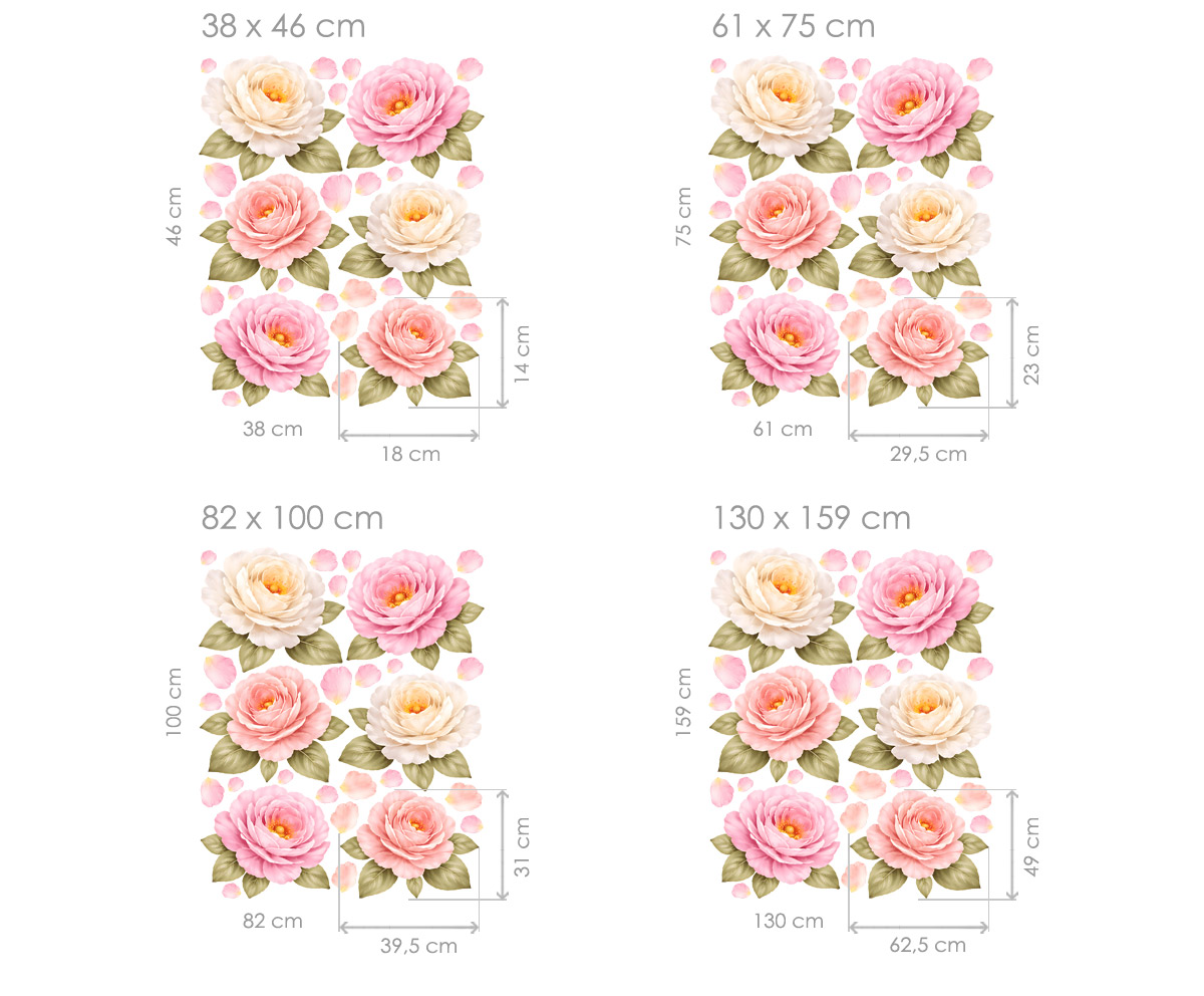 Nálepky na stenu „Kvety ruží“ vnesú do interiéru jemnú romantiku a elegantnú kvetinovú atmosféru. Rozmiestnené kvety ruží v pastelových odtieňoch ružovej a smotanovej pôsobia ľahko, vzdušne a zároveň veľmi dekoratívne. Detailné akvarelové spracovanie krásne zdôrazňuje štruktúru okvetných lístkov aj prirodzené farebné prechody. Drobné padajúce lístky okolo jednotlivých kvetov dodávajú celej kompozícii dynamiku a pocit pohybu. Vďaka rozloženému dizajnu je možné nálepky kreatívne aplikovať podľa vlastného priestoru, čo z nich robí ideálnu dekoráciu do spálne, obývacej izby aj dievčenskej izby. Dajú sa ľahko kombinovať s moderným aj romantickým štýlom interiéru. Perfektná voľba pre všetkých, ktorí chcú svoj domov zútulniť, dodať mu jemnosť a vytvoriť príjemné kvetinové prostredie plné harmónie.
