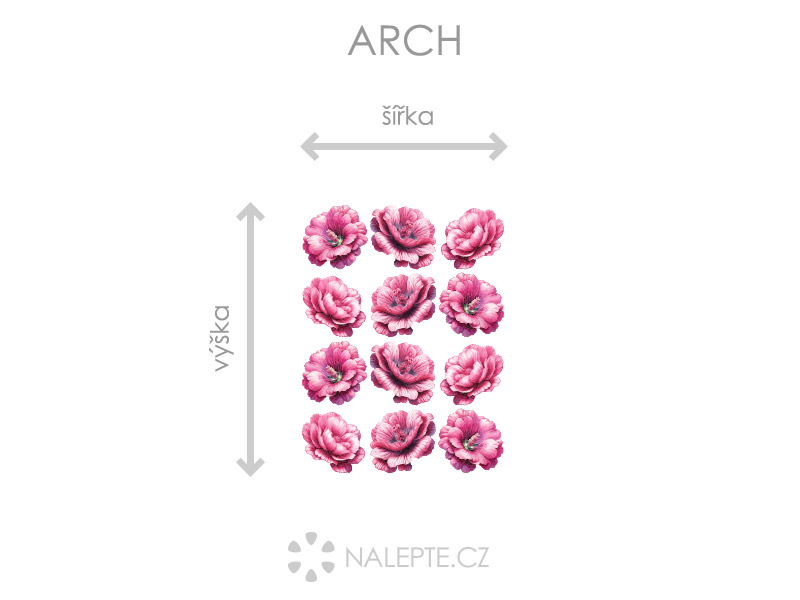 Arch = takto vám bude samolepka doručená. Každý prvok na archu je samostatná samolepka, jednotlivé části jednoduše od papírového podkladu odlepíte a nalepíte na stenu tak, aby zložili výposlední motív podľa Vašich predstáv. Arch si môžte prehliada'a vo fotogalérii. Rozmer archu volíte v objednáke. Prehľad preddefinovaních rozmerov (šírka x výška): a) hárok 15 x 20 cm b) hárok 35 x 47 cm c) hárok 56 x 75 cm d) hárok 75 x 100 cm e) hárok 98 x 130 cm Je možné zvoliť aj ľubovoľneý vlastní rozmer hárku pomocí posuvníku alebo klikání na "Vetší", "Menší"