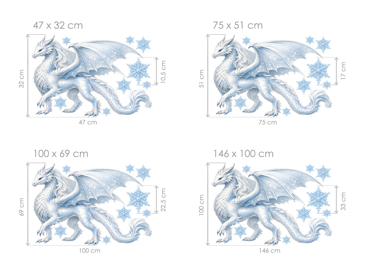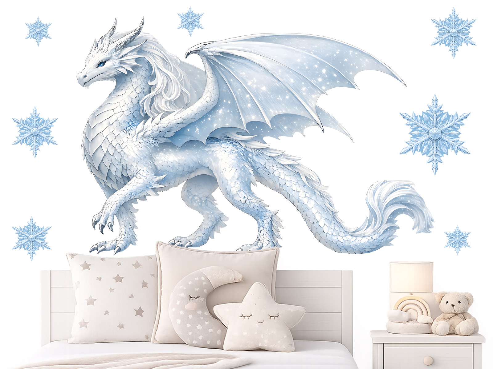 Nálepka na stenu Frozen Ice Dragon vnesie do detskej izby čarovnú zimnú atmosféru plnú jemných detailov a rozprávkovej elegancie. Dominantný motív ľadového draka v chladných modrých odtieňoch dopĺňajú jemné snehové vločky, ktoré vytvárajú pokojný a harmonický celok vhodný pre malých milovníkov fantázie a dobrodružstva. Vďaka vysokokvalitnej tlači vynikajú jemné farebné prechody a štruktúra šupín, čo dodáva dekorácii veľmi prirodzený vzhľad a zároveň výrazne oživuje prázdnu stenu nad posteľou alebo kútikom na hranie. Nálepka sa ľahko aplikuje, dobre priľne k hladkým povrchom a je k dispozícii v niekoľkých veľkostiach, aby vyhovovala priestorom rôznych veľkostí. Je ideálnou voľbou na vytvorenie útulného rozprávkového prostredia, kde sa deti budú cítiť bezpečne a každý deň si budú môcť vymýšľať svoje vlastné príbehy z ľadového kráľovstva.