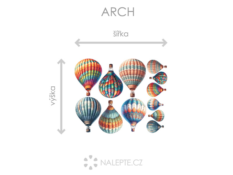 Arch = takto vám bude samolepka doručená. Každý prvok na archu je samostatná samolepka, jednotlivé části jednoduše od papírového podkladu odlepíte a nalepíte na stenu tak, aby zložili výposlední motív podľa Vašich predstáv. Arch si môžte prehliada'a vo fotogalérii. Rozmer archu volíte v objednáke. Prehľad preddefinovaních rozmerov (šírka x výška): a) hárok 47 x 38 cm b) hárok 75 x 60 cm c) hárok 100 x 80 cm d) hárok 161 x 130 cm Je možné zvoliť aj ľubovoľneý vlastní rozmer hárku pomocí posuvníku alebo klikání na "Vetší", "Menší"