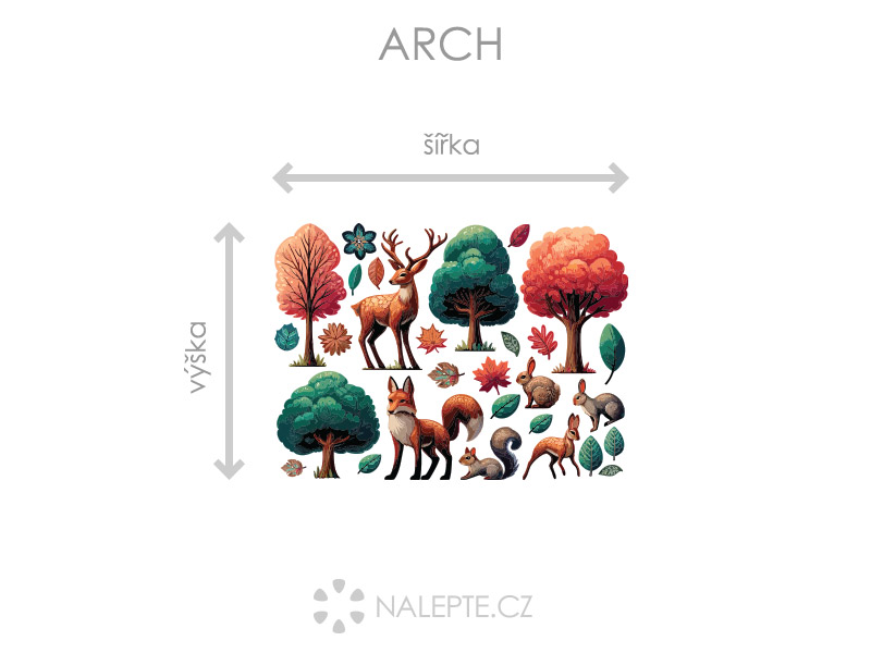 Arch = takto vám bude samolepka doručená. Každý prvok na archu je samostatná samolepka, jednotlivé části jednoduše od papírového podkladu odlepíte a nalepíte na stenu tak, aby zložili výposlední motív podľa Vašich predstáv. Arch si môžte prehliada'a vo fotogalérii. Rozmer archu volíte v objednáke. Prehľad preddefinovaních rozmerov (šírka x výška): a) hárok 47 x 34 cm b) hárok 75 x 54 cm c) hárok 100 x 73 cm d) hárok 130 x 95 cm e) hárok 165 x 120 cm Je možné zvoliť aj ľubovoľneý vlastní rozmer hárku pomocí posuvníku alebo klikání na "Vetší", "Menší"