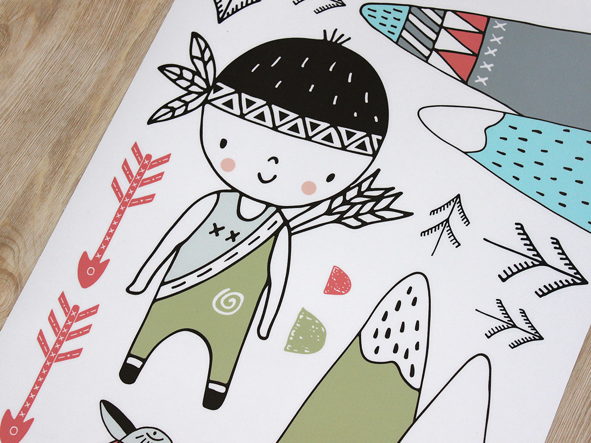 Samolepky na stenu s motívom malého indiána sú dokonalým doplnkom pre každý izbuíčiek malých dobrodruhov. Táto samolepka je inšpirovaná indiánským tématom, ktoré priáší do izbyíčku vzrušující atmosféru dobrodružstva. Je veselá a farebná, ço dodává priestoru živosť a oživí akúkoľvek stenu. Táto samolepka je ideální pre chlapcov, ktoríí milují príbehy o statočneých indiánech.
