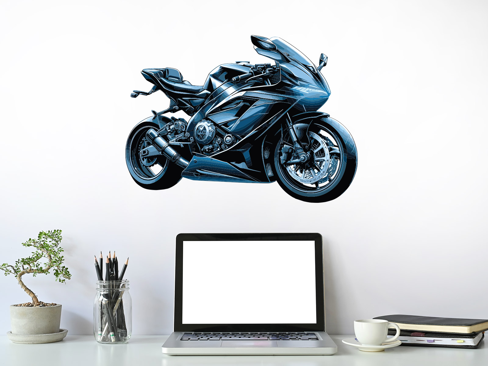 Samolepka na stenu „Modrá motorka“ je pôsobivou dekorací pre všetky milovníky rýchlých strojov, adrenalínu a moderního motocyklového dizajnu. Športoví motorka v hlbok&´ch modrých tónech s detailním technickým spracova&ním pôsobí dynamicky, precízne a realisticky, ako by bola pripravená okamžite vyraziť na trať. Ostré línie kapotáže, prepracované mechanické detaily a športoví silueta dodávají motívu energie a výrazný vizuální efekt. Samolepka sa stane dominantním prvkom interiéru a skvele zapadne do izby teenagera, pracovne alebo moderního priestoru, kde podtrhne osobití štýl a vášeň pre svet motoriek.