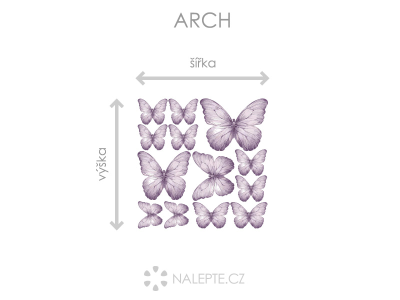 Arch = takto vám bude samolepka doručená. Každý prvok na archu je samostatná samolepka, jednotlivé části jednoduše od papírového podkladu odlepíte a nalepíte na stenu tak, aby zložili výposlední motív podľa Vašich predstáv. Arch si môžte prehliada'a vo fotogalérii. Rozmer archu volíte v objednáke. Prehľad preddefinovaních rozmerov (šírka x výška): a) hárok 20 x 20 cm b) hárok 30 x 30 cm c) hárok 45 x 45 cm d) hárok 75 x 75 cm Napríklad najmenší hárok 20 x 20 cm obsahuje 1 ks 10 cm, 2 ks 8 cm, 2 ks 5,5 cm, 8 ks cca 4 až 4,5 cm Je možné zvoliť aj ľubovoľneý vlastní rozmer hárku pomocí posuvníku alebo klikání na "Vetší", "Menší"