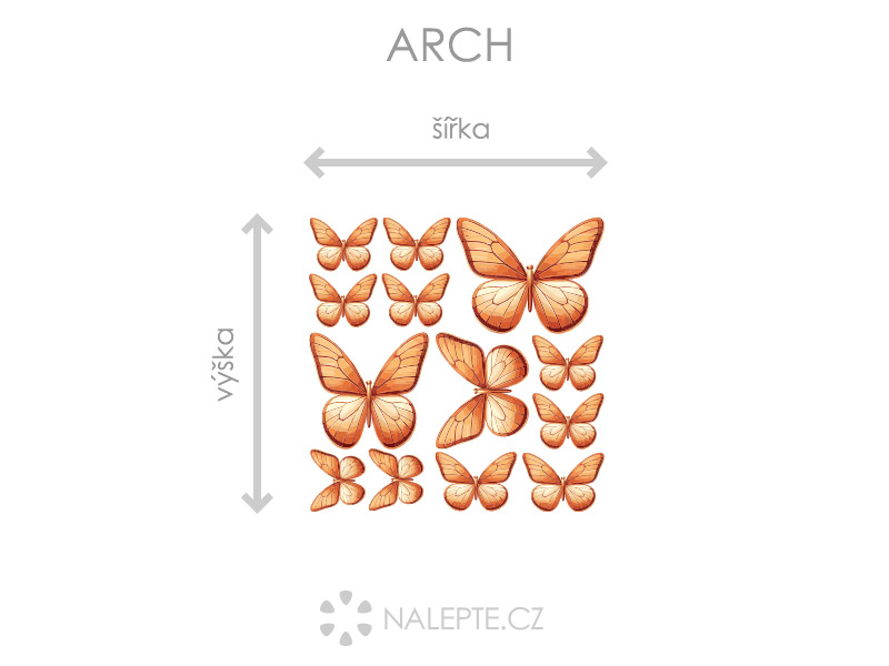 Arch = takto vám bude samolepka doručená. Každý prvok na archu je samostatná samolepka, jednotlivé části jednoduše od papírového podkladu odlepíte a nalepíte na stenu tak, aby zložili výposlední motív podľa Vašich predstáv. Arch si môžte prehliada'a vo fotogalérii. Rozmer archu volíte v objednáke. Prehľad preddefinovaních rozmerov (šírka x výška): a) hárok 20 x 20 cm b) hárok 30 x 30 cm c) hárok 45 x 45 cm d) hárok 75 x 75 cm Napríklad najmenší hárok 20 x 20 cm obsahuje 1 ks 10 cm, 2 ks 8 cm, 2 ks 5,5 cm, 8 ks cca 4 až 4,5 cm Je možné zvoliť aj ľubovoľneý vlastní rozmer hárku pomocí posuvníku alebo klikání na "Vetší", "Menší"