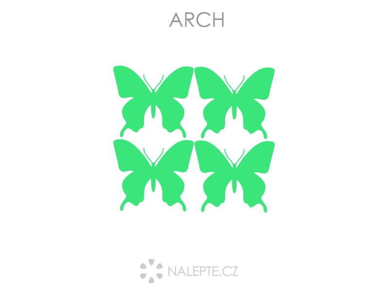 Balení obsahuje 4 kusy svítících motýlkov. Každý z motýlkov má šíri 10 cm a výšku 9 cm. Dodaný hárok so všami 4 svítícími motýlkami má rozmery 20 x 18 cm. Vhodné lepiť prakticky kamkoľvek napr. na strop či steny v detskej izbe.