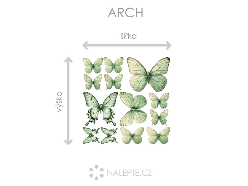 Arch = takto vám bude samolepka doručená. Každý prvok na archu je samostatná samolepka, jednotlivé části jednoduše od papírového podkladu odlepíte a nalepíte na stenu tak, aby zložili výposlední motív podľa Vašich predstáv. Arch si môžte prehliada'a vo fotogalérii. Rozmer archu volíte v objednáke. Prehľad preddefinovaních rozmerov (šírka x výška): a) hárok 20 x 20 cm b) hárok 30 x 30 cm c) hárok 45 x 45 cm d) hárok 75 x 75 cm Napríklad najmenší hárok 20 x 20 cm obsahuje 1 ks 10 cm, 2 ks 8 cm, 2 ks 5,5 cm, 8 ks cca 4 až 4,5 cm Je možné zvoliť aj ľubovoľneý vlastní rozmer hárku pomocí posuvníku alebo klikání na "Vetší", "Menší"