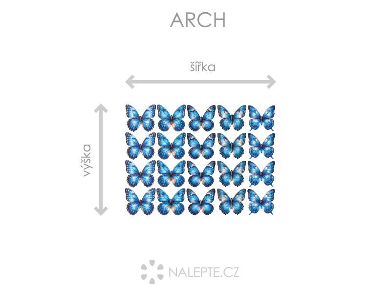 Cena je vždy uvedená za 20 kusov modrých motúľkov - samolepiek na stenu. Ak máte zájem o iné napr. vetší rozmery motíkov, kontaktujte nás na emaile: info@nalepte.sk. Spracujeme pre Vás ponídku. Štýloví modrí motýlci ako samolepky na stenu. V balení je 20 kusov jedné veľkosti.