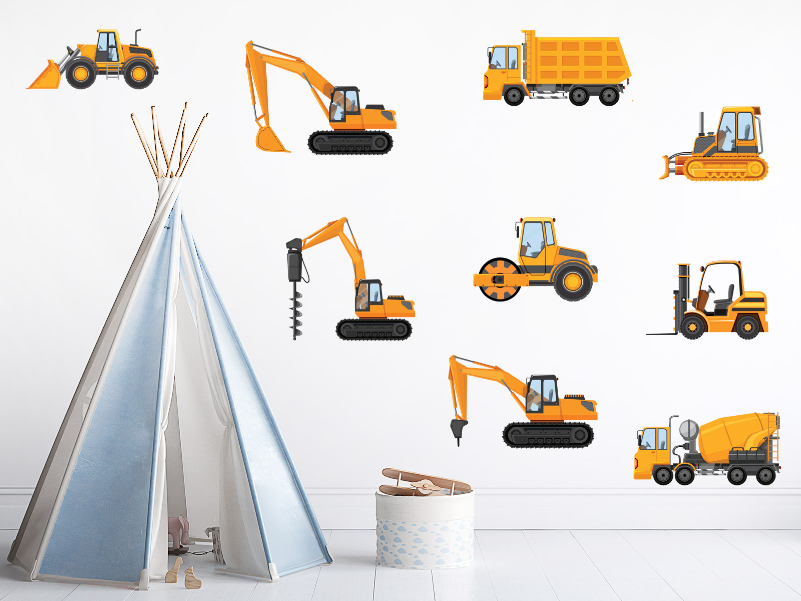 Premeňte detský izba v porádneé stavaniešťa plneé velkých strojov! Súprava „Náklaďáky a bagre“ poteší všetky malé milovníky techniky, bagrov a stavebních áut. Nájdete tu realisticky spracovaé stavební stroje – bager, buldozér, náklaďák, válec, míchačka, vysokozdvižný vozík aj vrtný stroj. Každý detail je premyšlený a vytvorenýý v profesionální kvalite – samolepky sú výrazné, ale zároveň pôsobí čisto a esteticky. Detskýý izba tak získá moderní a hravý vzhľad, ktorý inšpiruje k stavaniu, tvorení a hraní. Skvele sa hodí pre:- chlapičí izbíčky s témátou stavby, techniky alebo mesta- oživenieí priestoru nad posteľou, stolom alebo poličkou- kombináciu s dopravními alebo industriálními motívmi