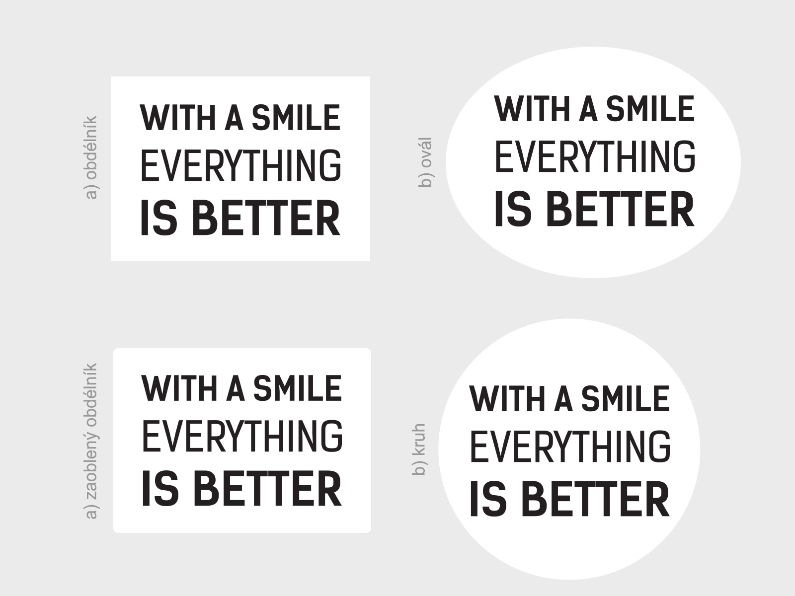 Ak vám preddefinované rozmery nevyhovujú, môžete si pomocou posúvača vybrať vlastné rozmery a vybrať si môžete aj z približne 50 farieb. Ide o potlač na bielej samolepiacej vinylovej fólii s tvarovaným výrezom. Aplikácia je jednoduchá a nevyžaduje priehľadnú transferovú fóliu. Je to kombinácia bieleho pozadia + farby, ktorú si vyberiete. Tvar bieleho pozadia je možné zmeniť. Môžete si vybrať a) štvorec, b) ovál, c) zaoblený štvorec, d) kruh, pozrite si fotogalériu. Ak máte záujem o iný tvar ako ten na hlavnej fotografii, stačí v poslednom kroku objednávky do poľa pre komentáre napísať „obdĺžnik“. Dostanete e-mail s potvrdením a konečným náhľadom. Nie je možné vybrať farbu textu: biela 010 alebo jedna z metalických farieb: 090 strieborná, 091 zlatá, 092 medená. Ak si vyberiete jednu z týchto farieb, budeme vás kontaktovať ohľadom zmeny farby alebo zrušenia objednávky.