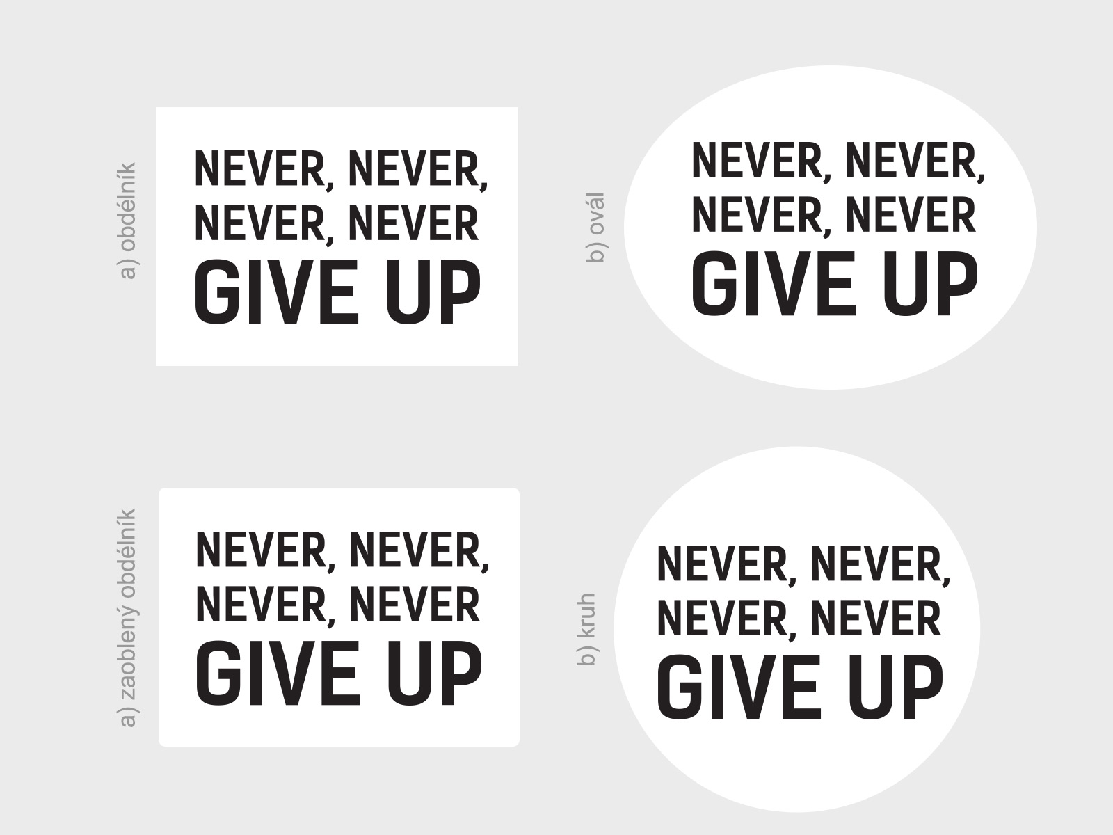 Ak vám nevyhovují preddefinované rozmery, je možné zvoli vlastní rozmer pomocí posuvníku, môžete si také vybrať z cca 50 farieb. Jedná sa o tlač na bielu samolepící vinylovú fóliu s tvarovým orezom. Lepení je jednoduché a bez priehľadné prenosové fólia. Ide o kombináciu bílého pozadí + Vámi vybrané farby. Tvar bílého pozadí je možné zmeniť. Možno vybrať a) obílník, b) ovál, c) zaoblený obdélník, d) kruh viď fotogaléria. Ak teda máte zájem o iný tvar ako na hlavní fotografiu, stačí v posledním kroku objednávky do pola poznámka napísa napr. "kruh". Dostanete email s potvrdením a finálním náhľadom. Není možné zvoli† farbu textu: bielu 010 alebo jednu z metalickích farieb: 090 striíbrná, 091 zlatá; Ak zvolíte jednu z týchto farieb budete kontaktováni ohľadne zmeny farby alebo zrušení objednávky. Máte jasnú víziu, cíl alebo životní cestu? Potom je pre vás ideální tento citát v slovenskom preklade "Nikdy sa nevzávaj", nalepte si ho napríklad k poítacu, zatnite zuby a choďte za svým cíom ;) Vyrobí veľkosti aj farbe. Odporúčame kombinovať s ostatními motivacními citátymi z naší ponuky ídky.