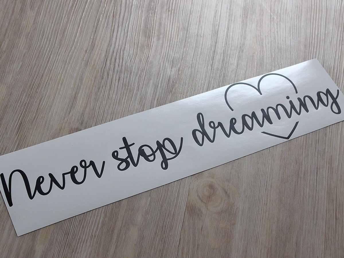 Hľadali ste: Never stop dreaming samolepky na stenu, Never stop dreaming nálepky na stenu, Never stop dreaming dekorácie na stene, Nápis Never stop dreaming tapety na stene