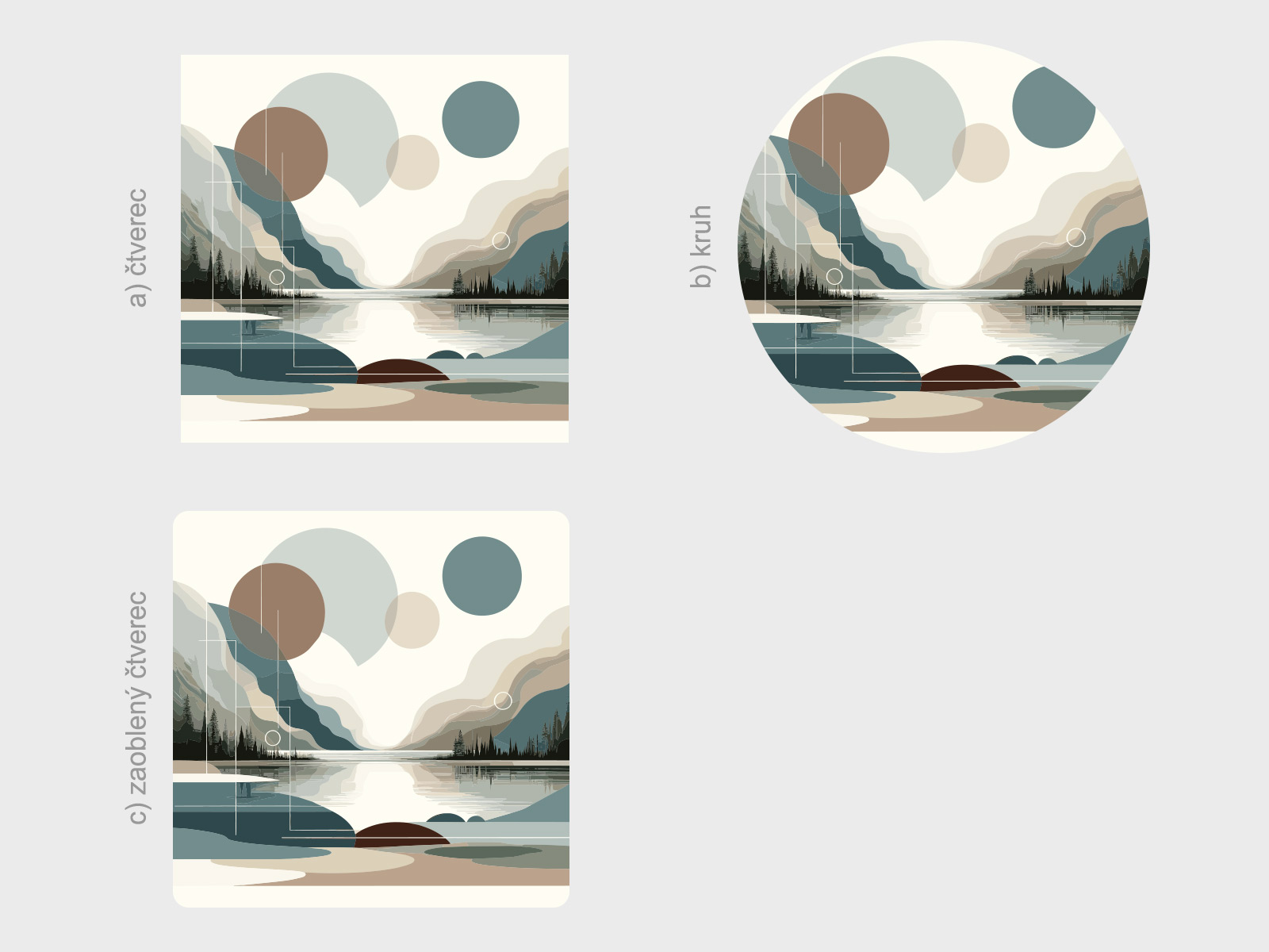 Tvar je možné zmeniť. Možno vybrať a) štvorec, b) kruh, c) zaoblený štvorec viď fotogaléria. Ak teda máte zájem o iný tvar ako na hlavní fotografiu, stačí v posledním kroku objednávky do pola poznámka napísa napr. "kruh". Jedná sa o tištený samolepící plakát - imitácia maľby Je možné zvoliť aj ľubovoľneý vlastní rozmer hárku pomocí posuvníku alebo klikání na "Vetší", "Menší"