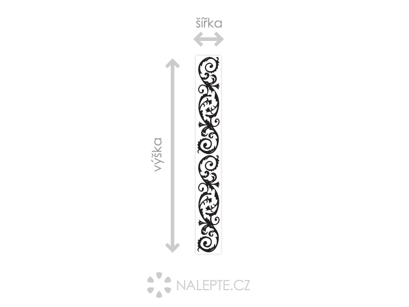 Štýlová dekorácia na stenu okrasný pruh je určená pre doplní úských priestorov. Je možné zakúpiť víke kusov tejto samolepky a vytvoriť dojem tapety na širším priestore steny. Jedná sa vždy o bílý podklad - bílou samolepící fóliu, ktorá je potlačená ornamentami vo vámi vybrané farbe. Je možné voli vlastní rozmer, teda výšku pruhu presne prispôsobiť výšce vaší múru. Není možné zvoliť bielu farbu 010 alebo jednu z metalickích farieb: 090 stri&br; Ak zvolíte jednu z týchto farieb budete kontaktováni ohľadne zmeny farby alebo zrušení objednávky.