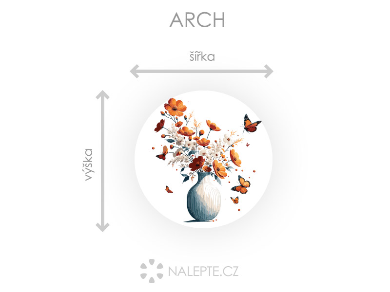 Arch = Arch si môžete prehliadnuť vo fotogalérii. Rozmer archu volíte v objednáke. Prehľad preddefinovaních rozmerov (šírka x výška): a) hárok 20 x 20 cmb) hárok 45 x 45 cm c) hárok 75 x 75 cm d) hárok 100 x 100 cm e) hárok 130 x 130 cm Je možné zvoliť aj ľubovoľneý vlastní rozmer hárku pomocí posuvníku alebo klikání na "Vetší", "Menší"