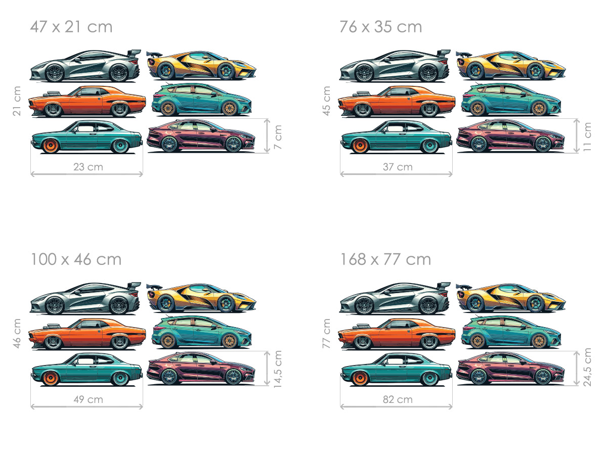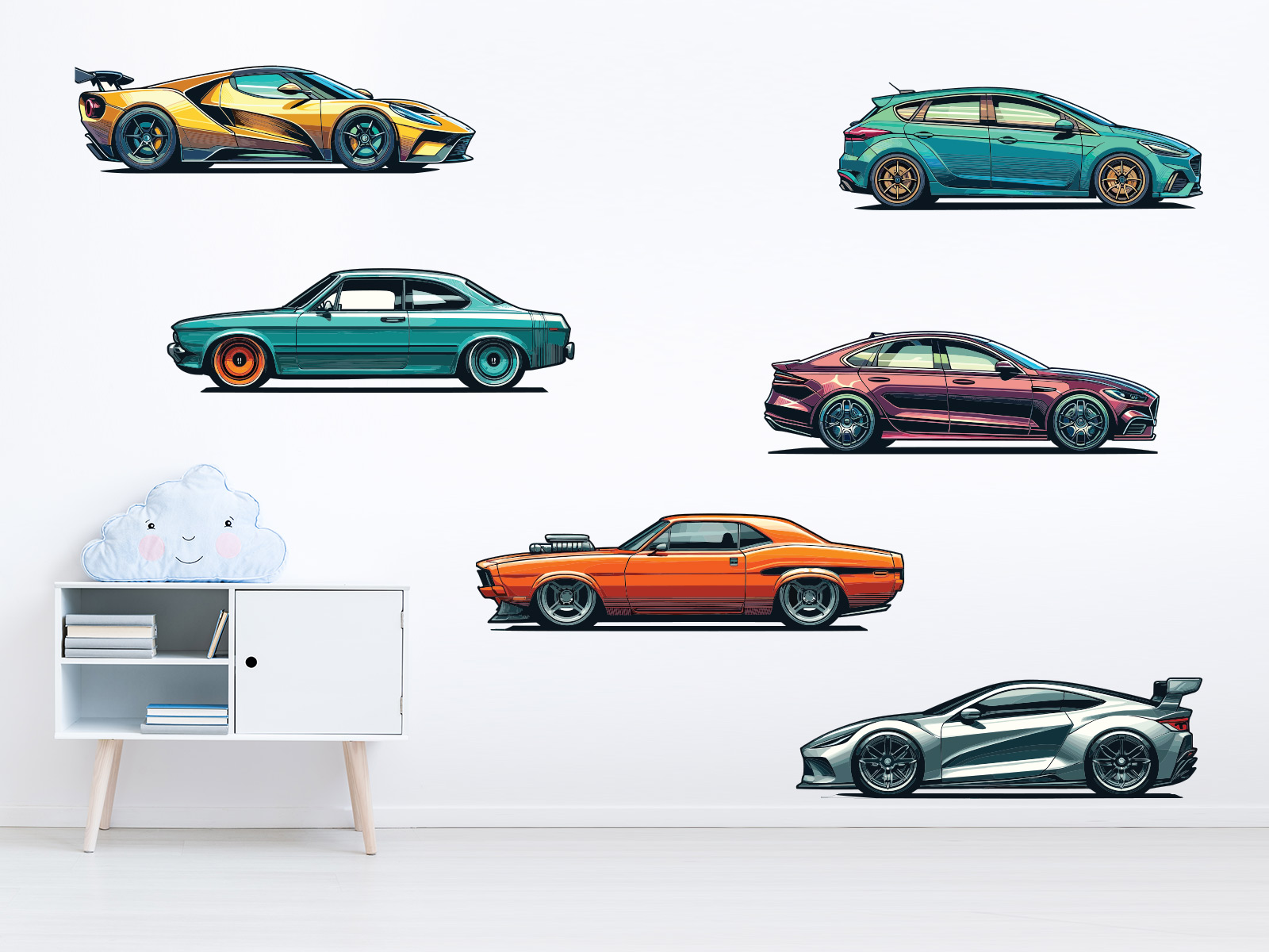 Samolepky na stenu „Osobní autá“ priáší do detskej izby energiu, štýl a rýchlosť v podobe šestice detailne ilustrovaných automobilov, ktoré poteší každého malého nadšenca do áut. Na archu nájdete pestrú kombináciu športovních vozidiel, elegantních sedanov i charizmatických retro modelov – každý z nich v jedinečné farebné palete as precízne vykreslenými detailmi karosérie, kolies i svetiel. Díky této rozmanitosti je mo|né vytvori† na stene dynamickú scénu závodní dráhy, mestského prevádzky alebo zberírky oblíbených áut. Samolepka je ideální ako estetické doplnenýí izby, ktoré podporí detskú fantáziu, oživí priestor a zároveň nabídne; možnosť hravého rozmístení jednotlivých áut podπa vlastního vkusu.